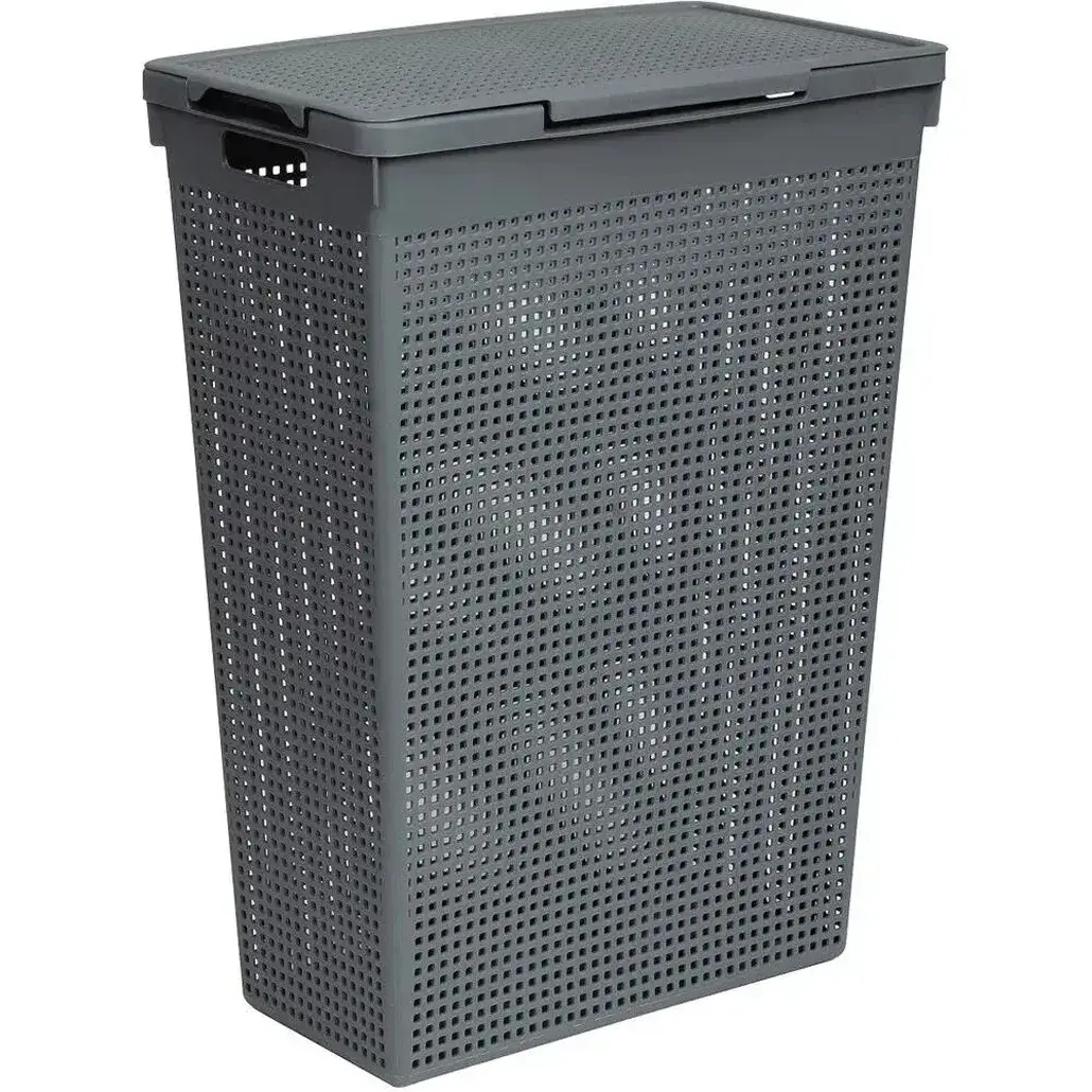 Корзина для белья "Лофт" узкая с крышкой, пластик, 50л, серый цвет