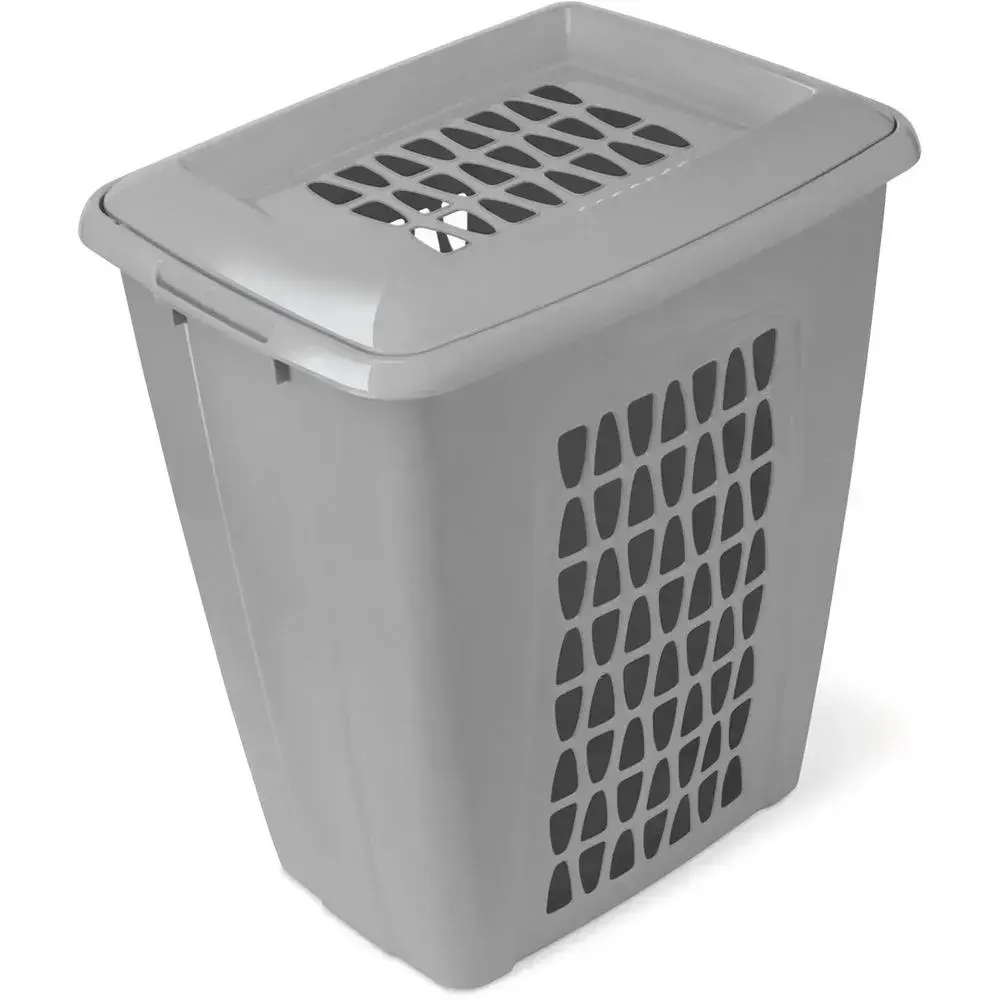 Корзина для белья "Молетта" прямоугольная с крышкой, 45л, вентиляционные отверстия, цвет пыльно-серый С701ПСЕР