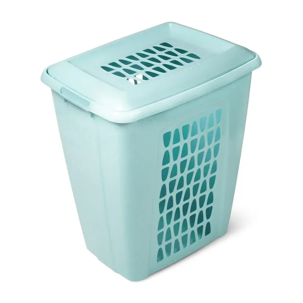 Корзина для белья прямоугольная с крышкой, комплект 4 шт, 60л, пластик, бирюзовый цвет