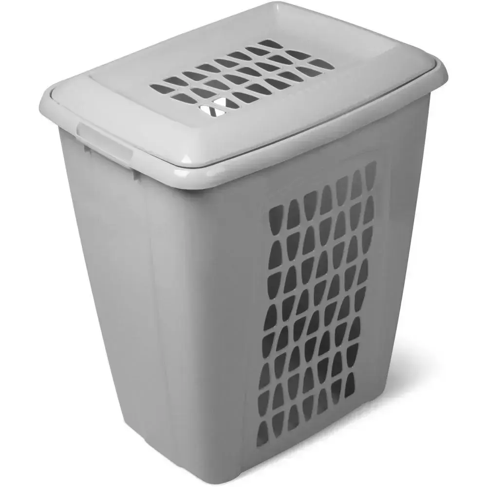Корзина для белья прямоугольная 60л с крышкой, пластик, пыльно-серая, комплект 4 шт
