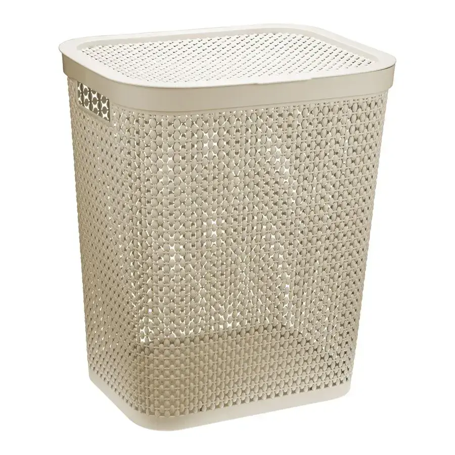 Корзина для белья пластиковая 55л, комплект 5 шт, цвет латте, вентилируемые стенки