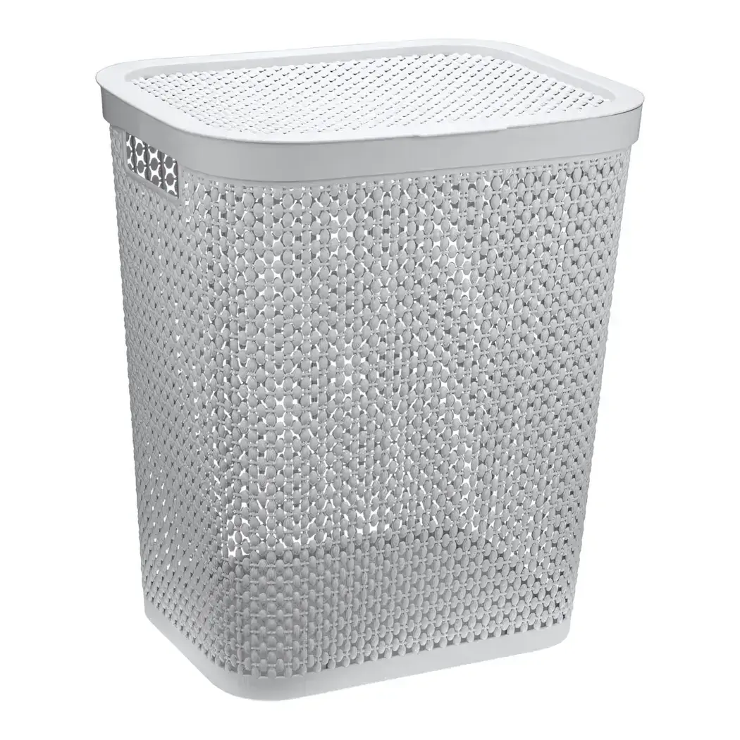 Корзина оснащена удобной крышкой, которая защищает содержимое от посторонних взглядов и пыли. Перфорированные стенки обеспечивают циркуляцию воздуха, предотвращая появление затхлого запаха. Прямоугольная форма с закругленными углами делает использование максимально комфортным и безопасным.