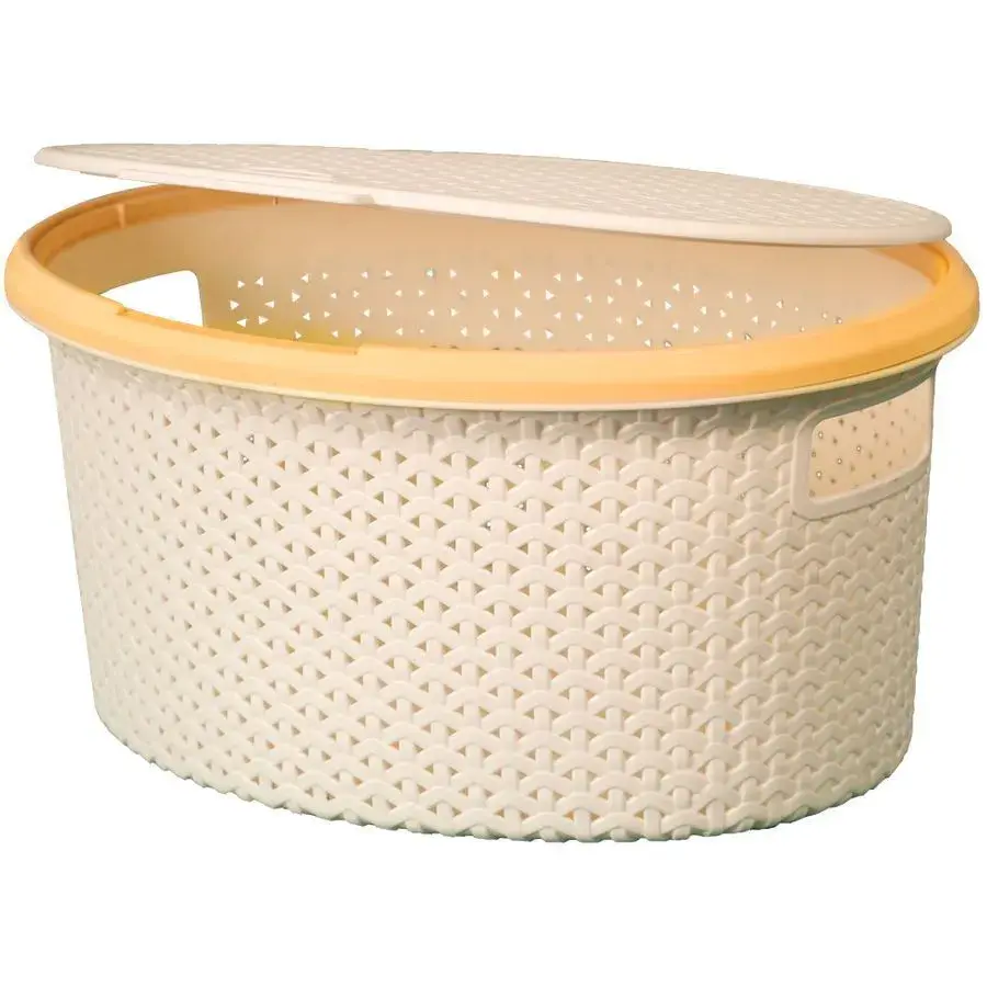 Корзина изготовлена из пластика, легко моется, устойчива к влаге и предназначена для долговременного хранения одежды и текстиля. Вы получите одну корзину с крышкой, цвет и оттенок выбирается случайно из ассортимента светлых тонов. Отличный выбор для организации пространства и поддержания чистоты, особенно в небольших квартирах и семейных домах. Добавьте удобство вашему дому — храните бельё красиво и аккуратно!