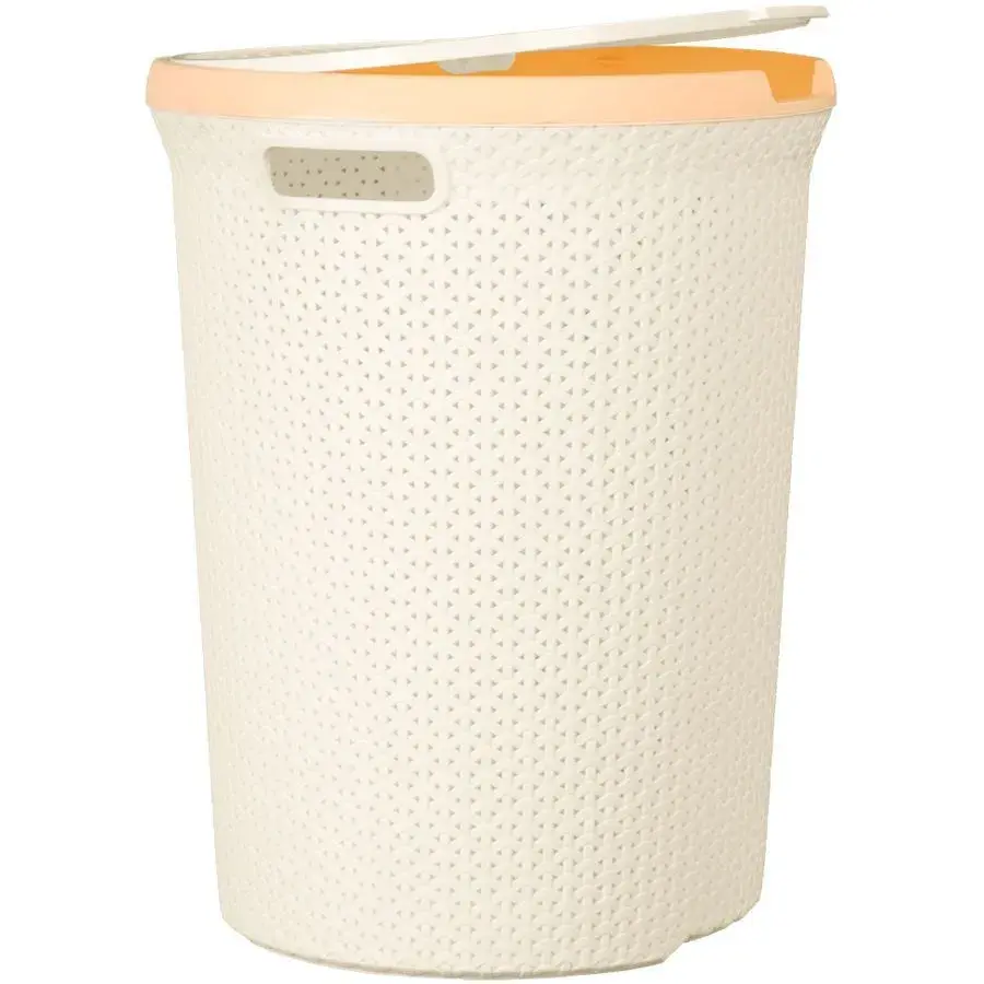 Корзина для белья круглая с крышкой 55л, пластик, плетёный дизайн, удобное хранение