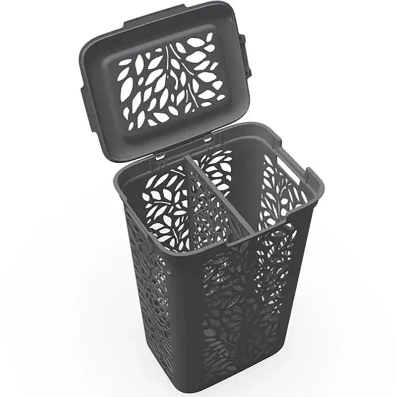 Корзина для белья «Leaves» с разделителем, 60л, 440х635мм, пластик, серый (комплект 4 шт)