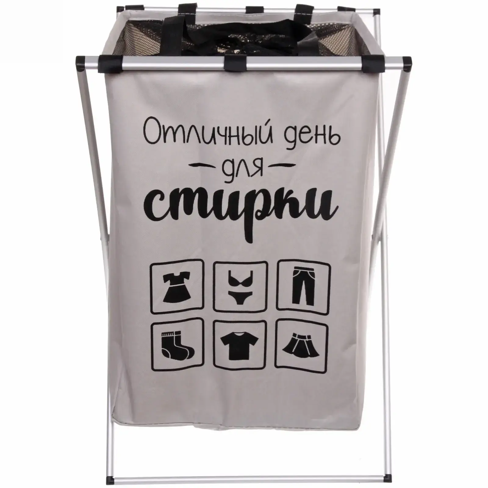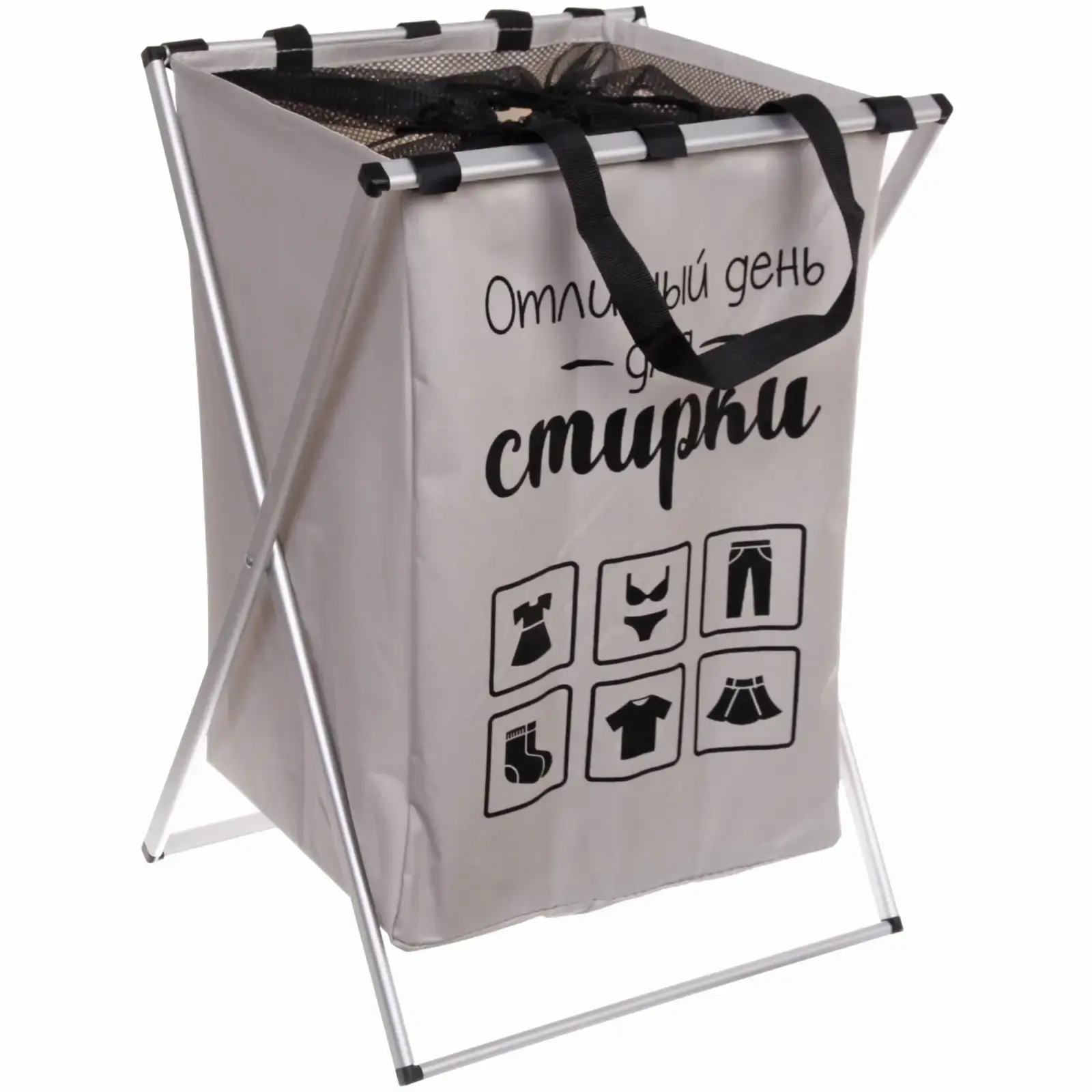 Корзина для белья складная с вентиляцией и ручками, алюминиевый каркас, 38×36×57 см, серая