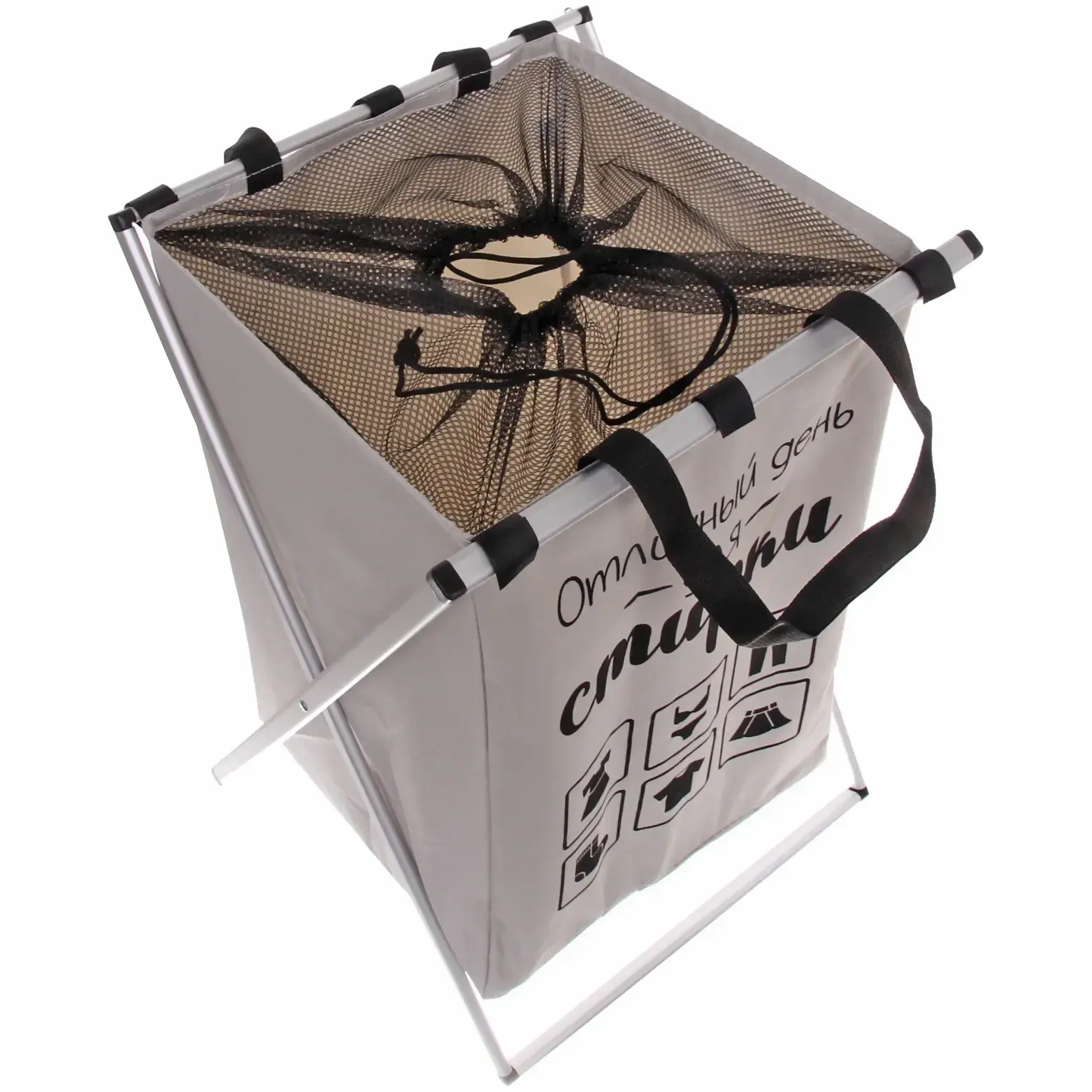 Практичная складная корзина с продуманной конструкцией станет вашим надежным помощником в поддержании порядка. Просторное отделение и сетчатые вставки обеспечивают оптимальные условия для хранения белья до стирки.