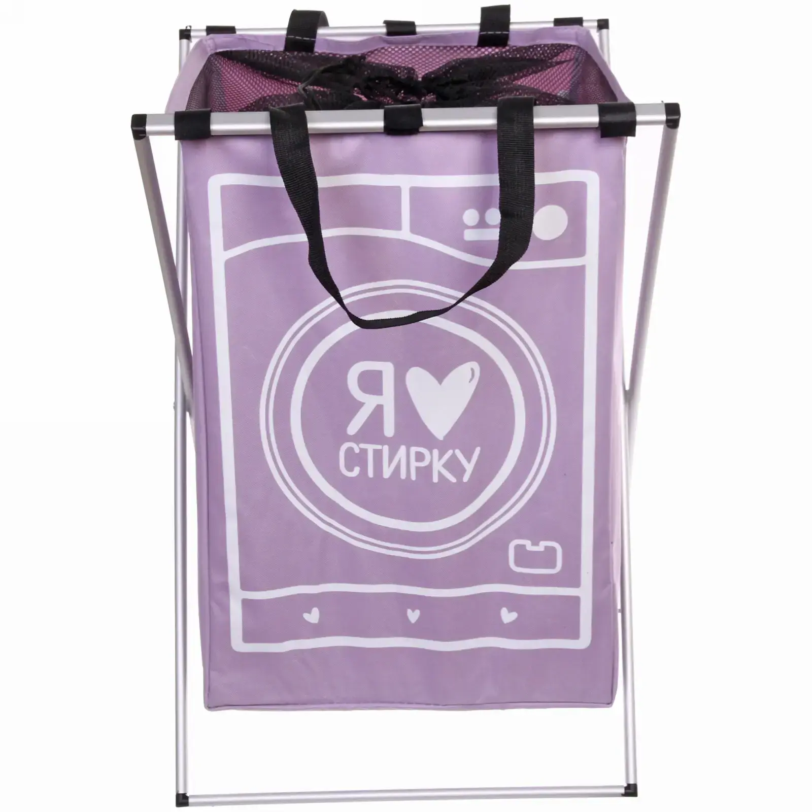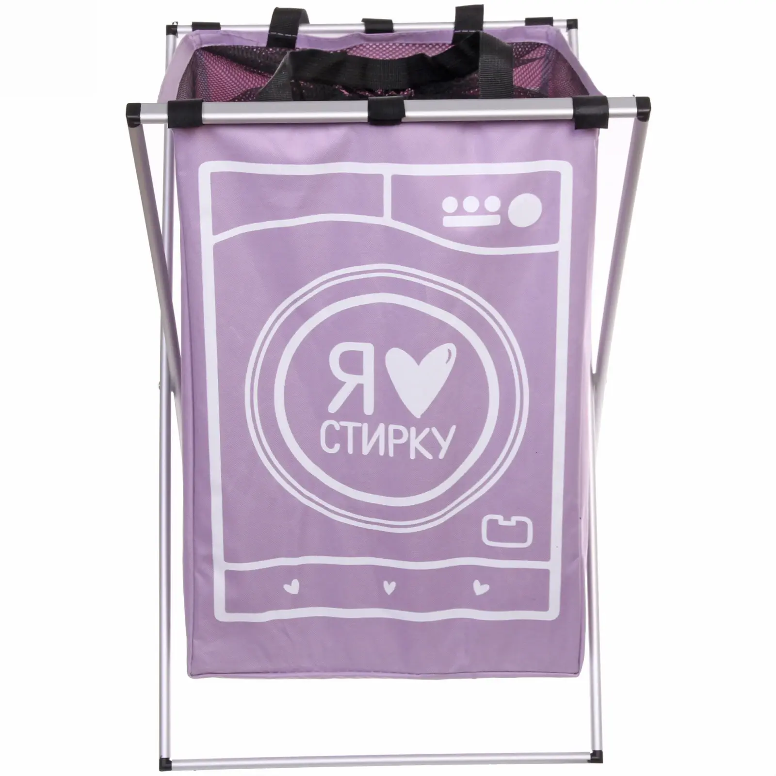 Корзина для белья складная с принтом "Я ♥ СТИРКУ", 38х36х57 см, полиэстер, фуксия