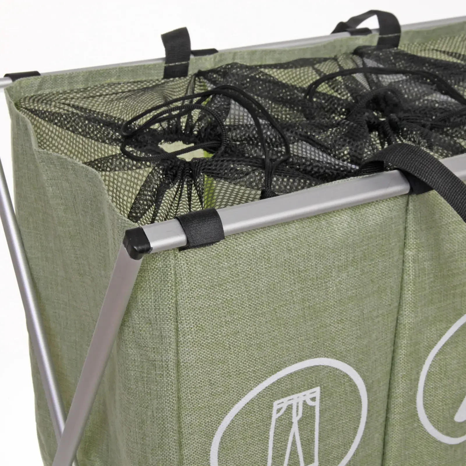 Каркас из прочной стали с антикоррозийным покрытием. Внешний чехл из износостойкого полиэстера Oxford плотностью 600D. Внутренние перегородки усилены пластиковыми вставками для сохранения формы. Все швы прошиты двойной строчкой.