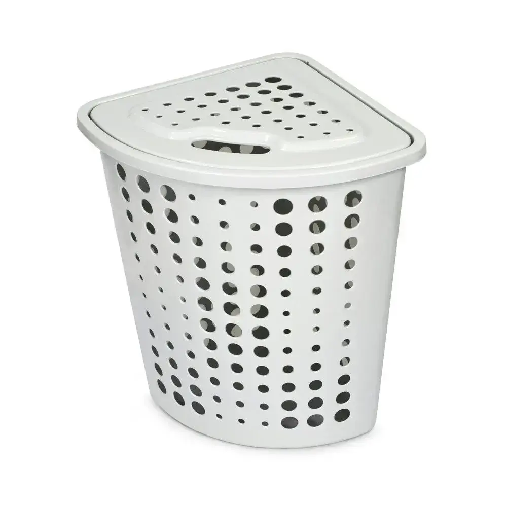 Корзина для белья угловая «Молетта» 45л с крышкой, комплект 6 шт, вентиляционные отверстия, светло-серая