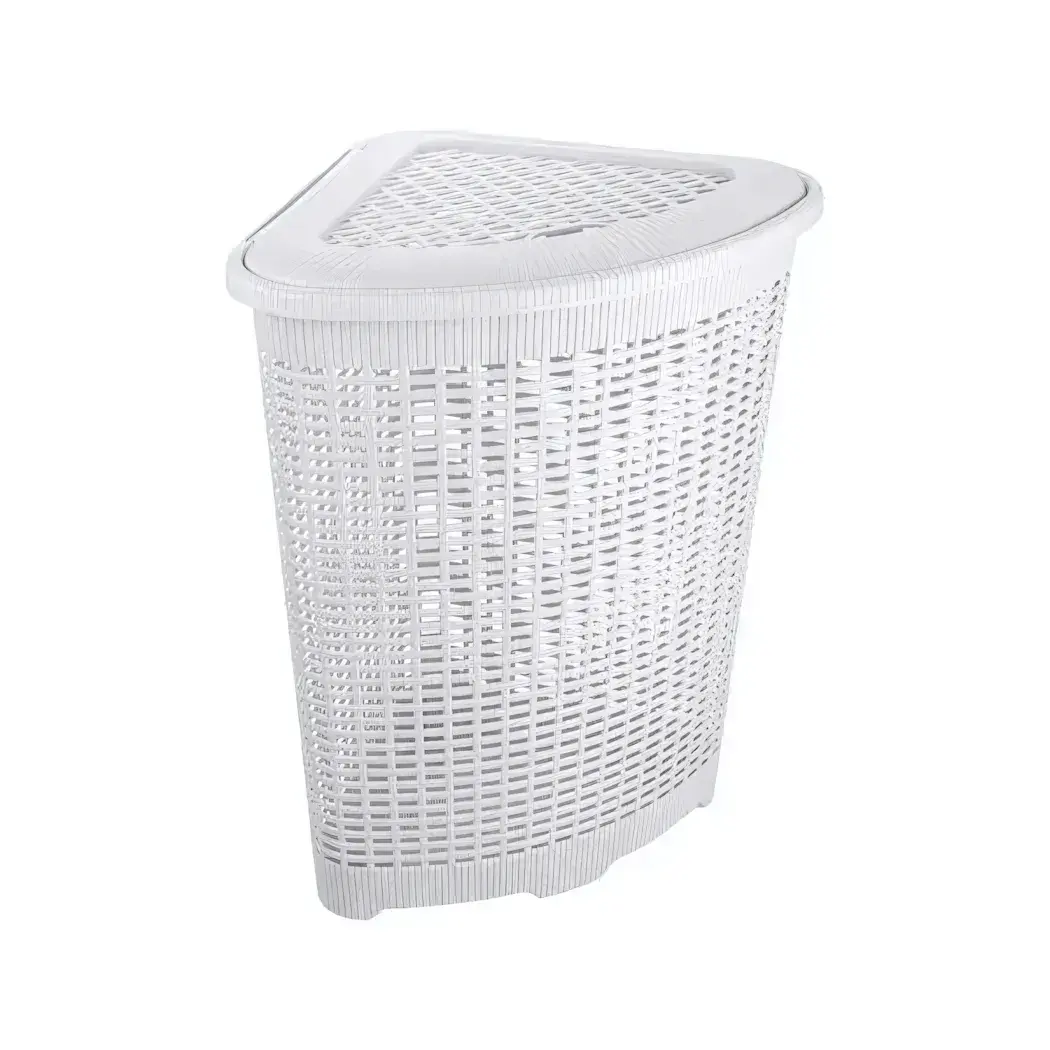 Корзина для белья угловая 50л с крышкой, пластик, 39.5х39.5х59.5см, белый