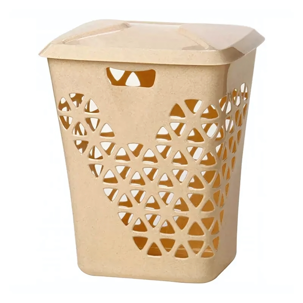Компактные габариты 37×47×55 см позволяют разместить корзину даже в небольших ванных комнатах. Износостойкий пластик сохраняет первоначальный вид при регулярном использовании, а нейтральный бежевый оттенок легко впишется в любой интерьер.