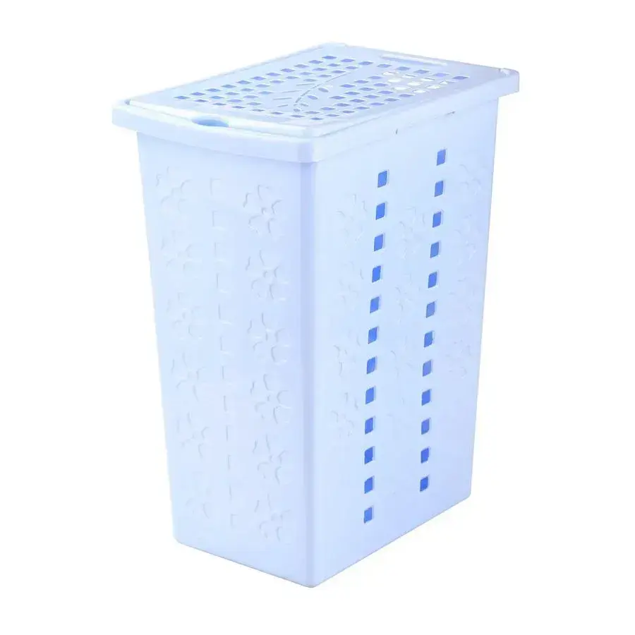 Корзина для белья 30л с перфорированной крышкой, пластик, голубой цвет, узорчатый дизайн