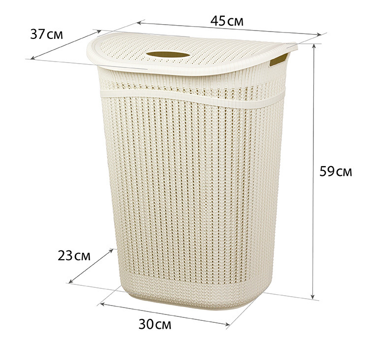 Корзина оснащена удобным овальным отверстием для доступа к содержимому. Её размеры (59х45х30см) делают её достаточно вместительной, но при этом компактной для размещения в любом помещении. Изготовлена из качественного пластика, устойчивого к повреждениям.