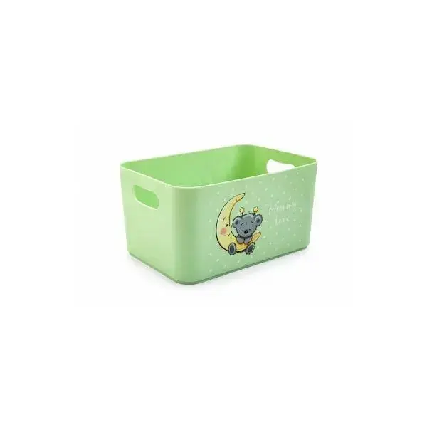 Контейнер для игрушек Mommy Love, пластик, зеленый, рисунок медведя на луне, ручки