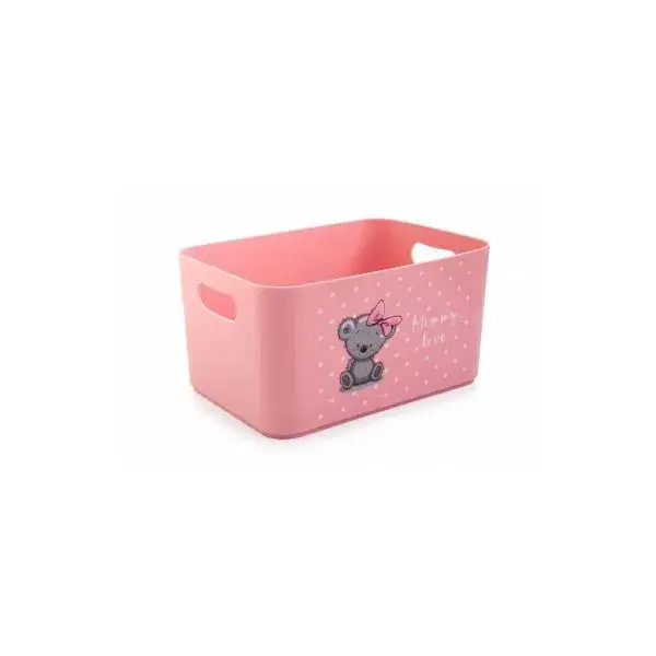 Превратите беспорядок в элегантный порядок с помощью практичной корзины "Mommy love". Её нежно-розовый цвет и декоративный медвежонок создают атмосферу уюта в детской комнате.
