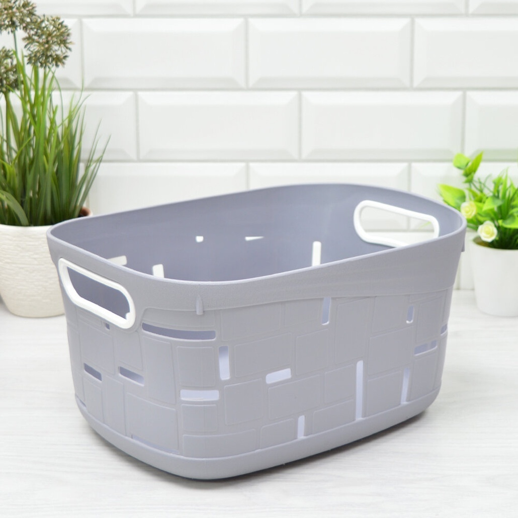 Практичное решение для организации вещей в ванной, гардеробе или на открытых полках. Перфорированные стенки обеспечивают циркуляцию воздуха, а удобные ручки делают переноску содержимого комфортной.