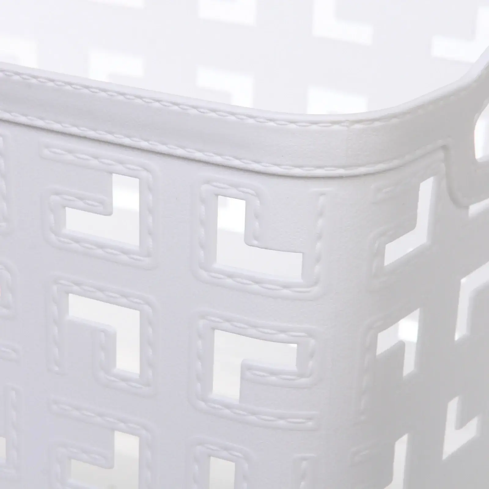Корзина изготовлена из качественного пластика, что обеспечивает ее долговечность и легкость в уходе. Сетчатый узор на стенках не только придает ей эстетичный вид, но и обеспечивает хорошую вентиляцию для хранения вещей. Вы сможете легко видеть содержимое корзины, что сэкономит ваше время при поиске нужных предметов.