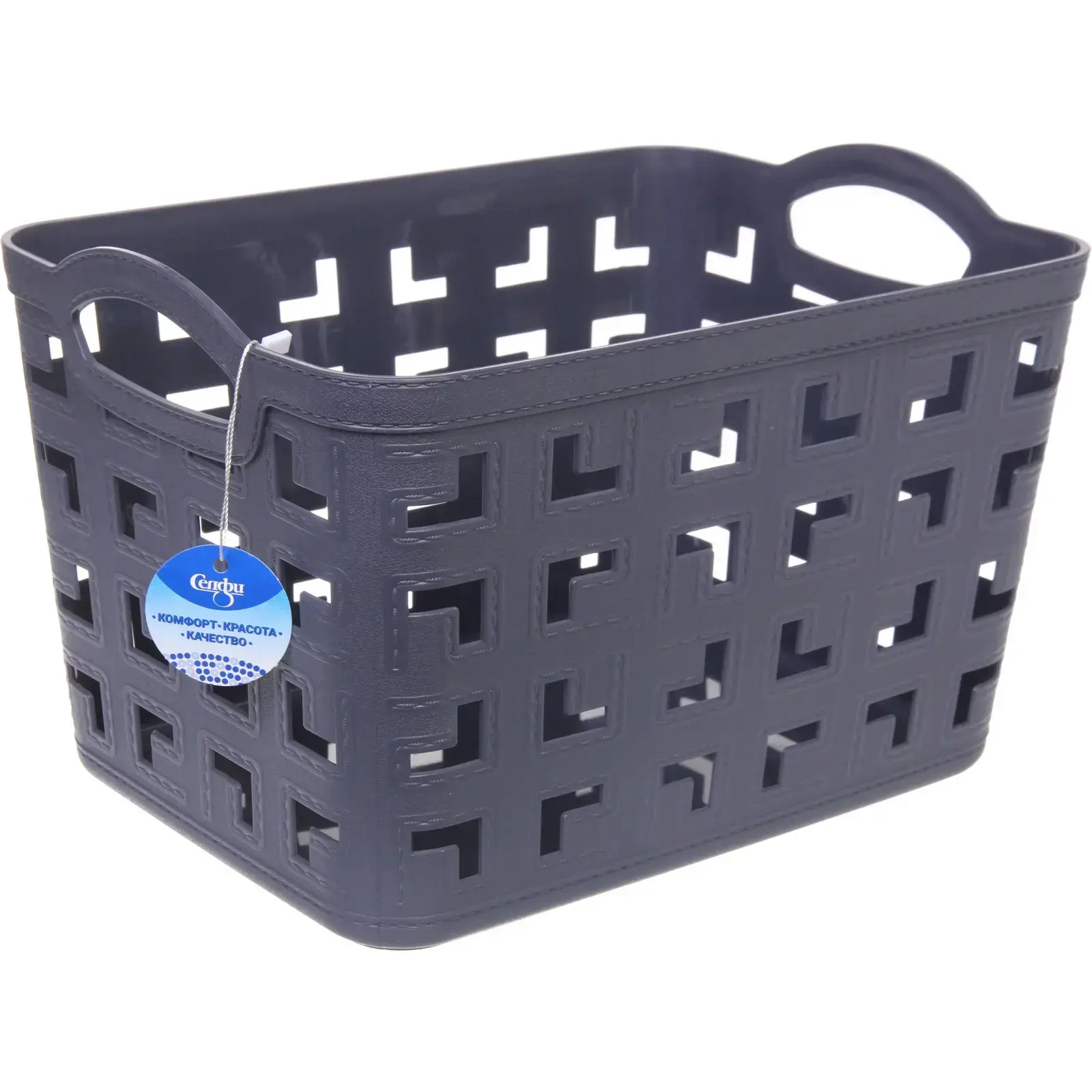 Эта корзина идеально подходит для хранения игрушек, одежды, книг и других мелочей. Благодаря открытым ручкам, её легко переносить, а перфорированный дизайн обеспечивает хорошую вентиляцию и видимость содержимого. Корзина станет отличным дополнением к вашему интерьеру, добавляя ему стиль и порядок.