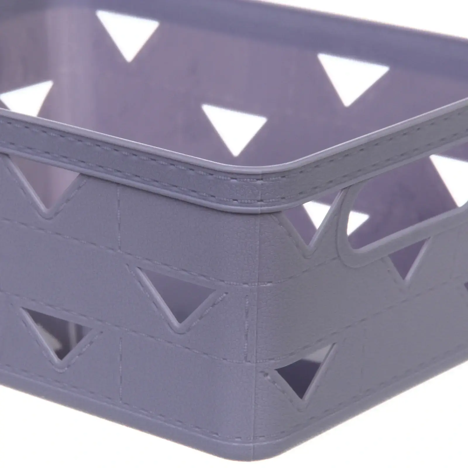 Корзина «ЭНИГАРТ» изготовлена из прочного пластика с матовой текстурой, что обеспечивает долговечность и легкость в уходе. Отверстия в форме треугольников не только добавляют эстетическую привлекательность, но и обеспечивают вентиляцию содержимого, предотвращая накопление влаги. Размеры 20х15х9 см делают ее компактной и удобной для использования в любых условиях.