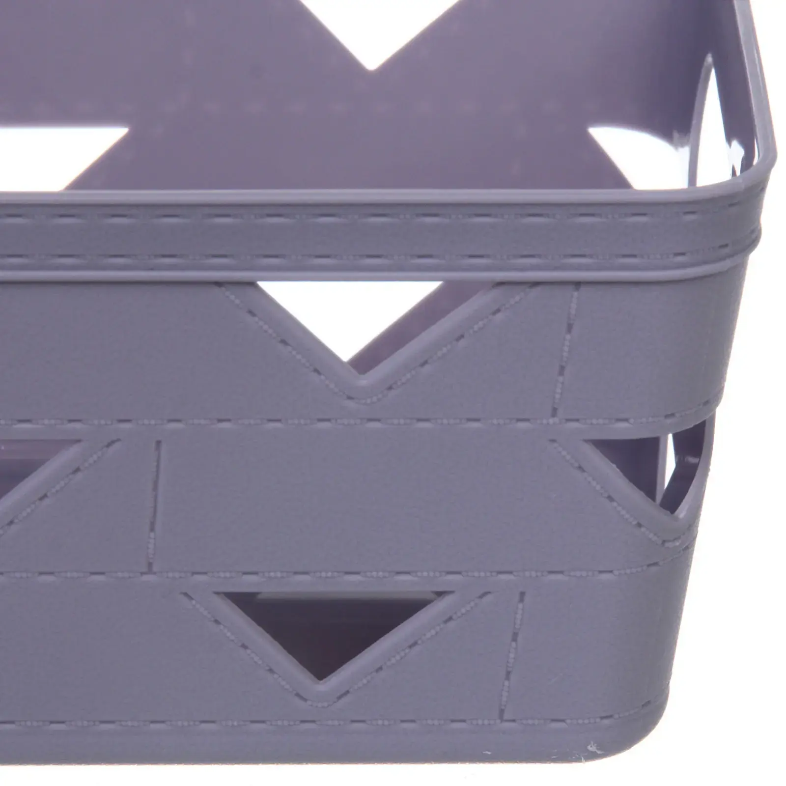 Эта корзина идеально подходит для хранения различных предметов: от игрушек до кухонных принадлежностей. Благодаря удобным ручкам, вы сможете легко переносить ее из комнаты в комнату, а перфорация в виде треугольников обеспечивает вентиляцию и позволяет видеть содержимое. Корзина станет отличным выбором для использования в ванной, на кухне или в детской комнате.