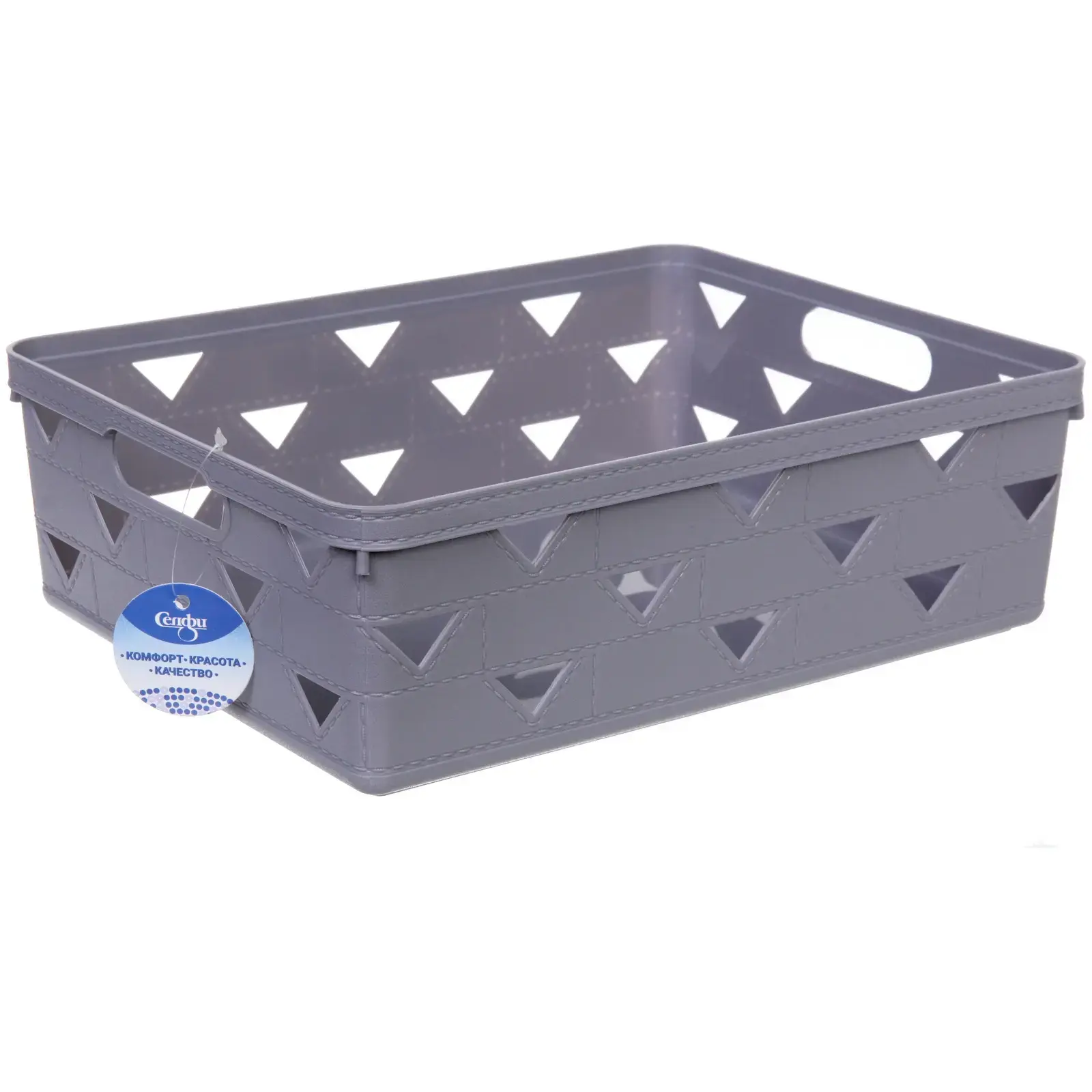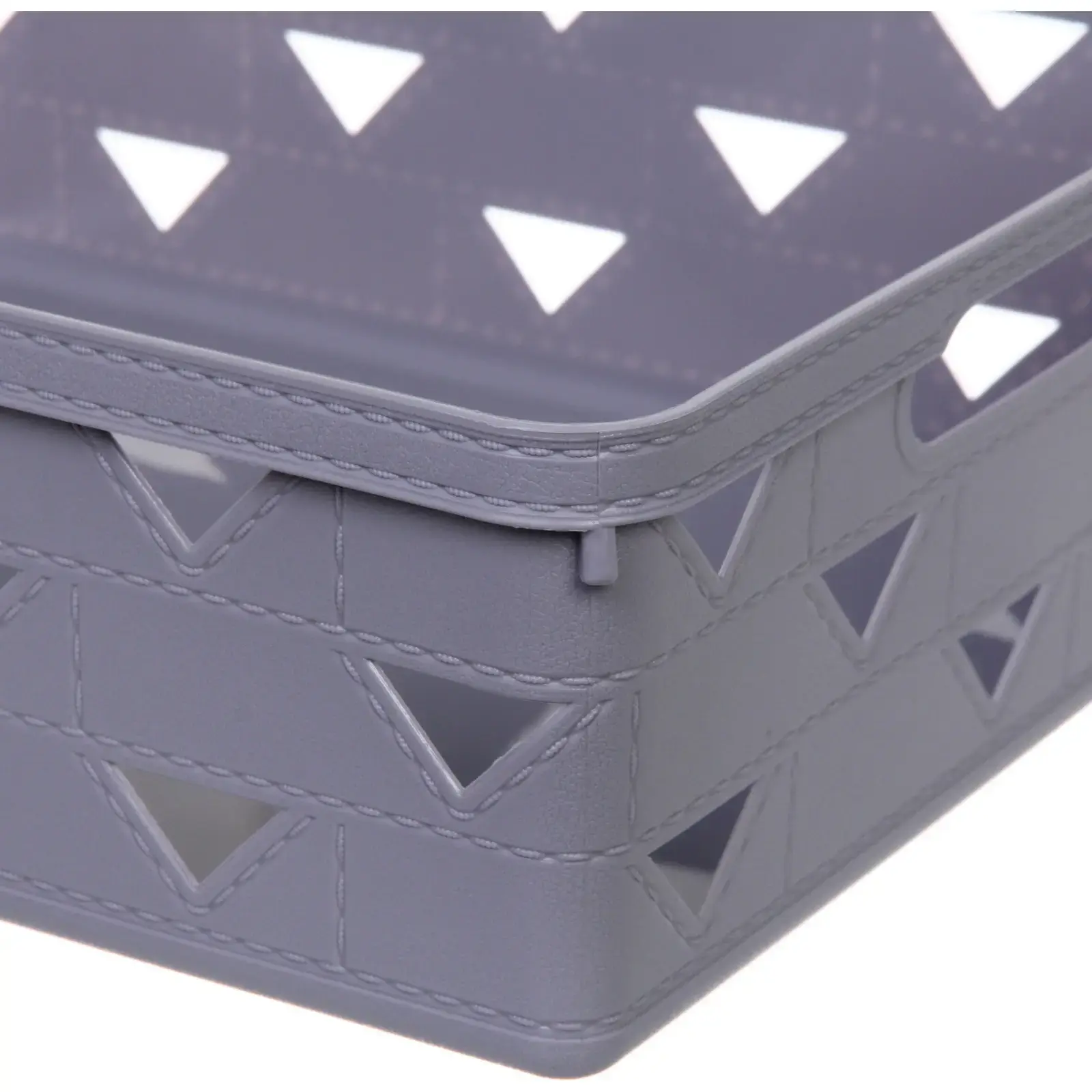 Эта корзина идеально подходит для хранения игрушек, канцелярских принадлежностей, мелочей и других предметов, которые требуют аккуратного размещения. Благодаря удобным ручкам, вы сможете легко перемещать корзину по дому, а перфорация в виде треугольников обеспечивает видимость содержимого и вентиляцию.