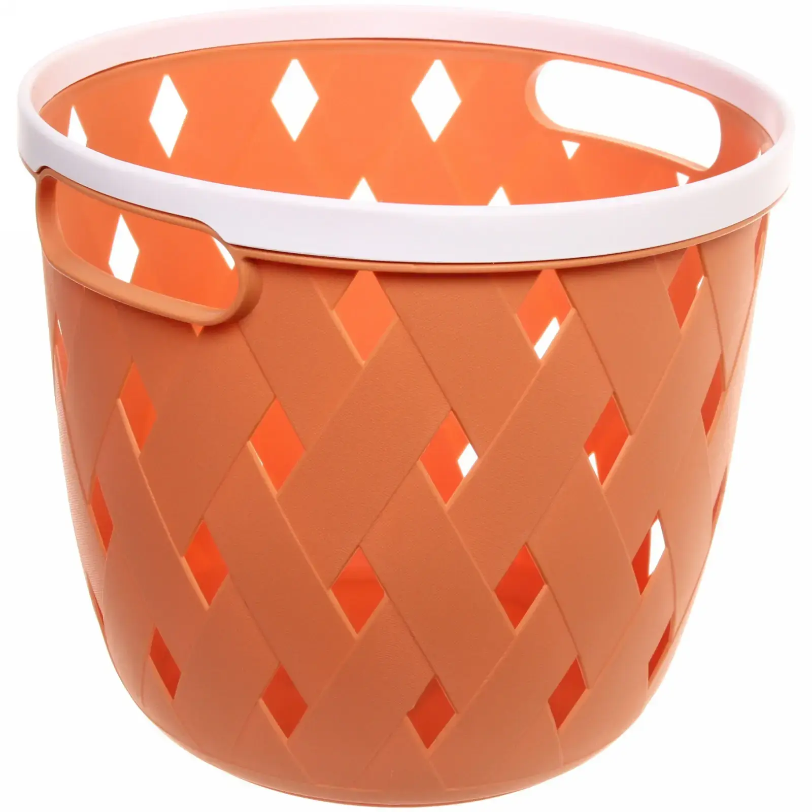 Пластиковая корзина с ромбовидным узором и эргономичными ручками станет идеальным помощником в организации хранения. Светло-оранжевый оттенок с белой окантовкой добавит яркий акцент в интерьер, а прочный материал гарантирует долговечность даже при ежедневном использовании.