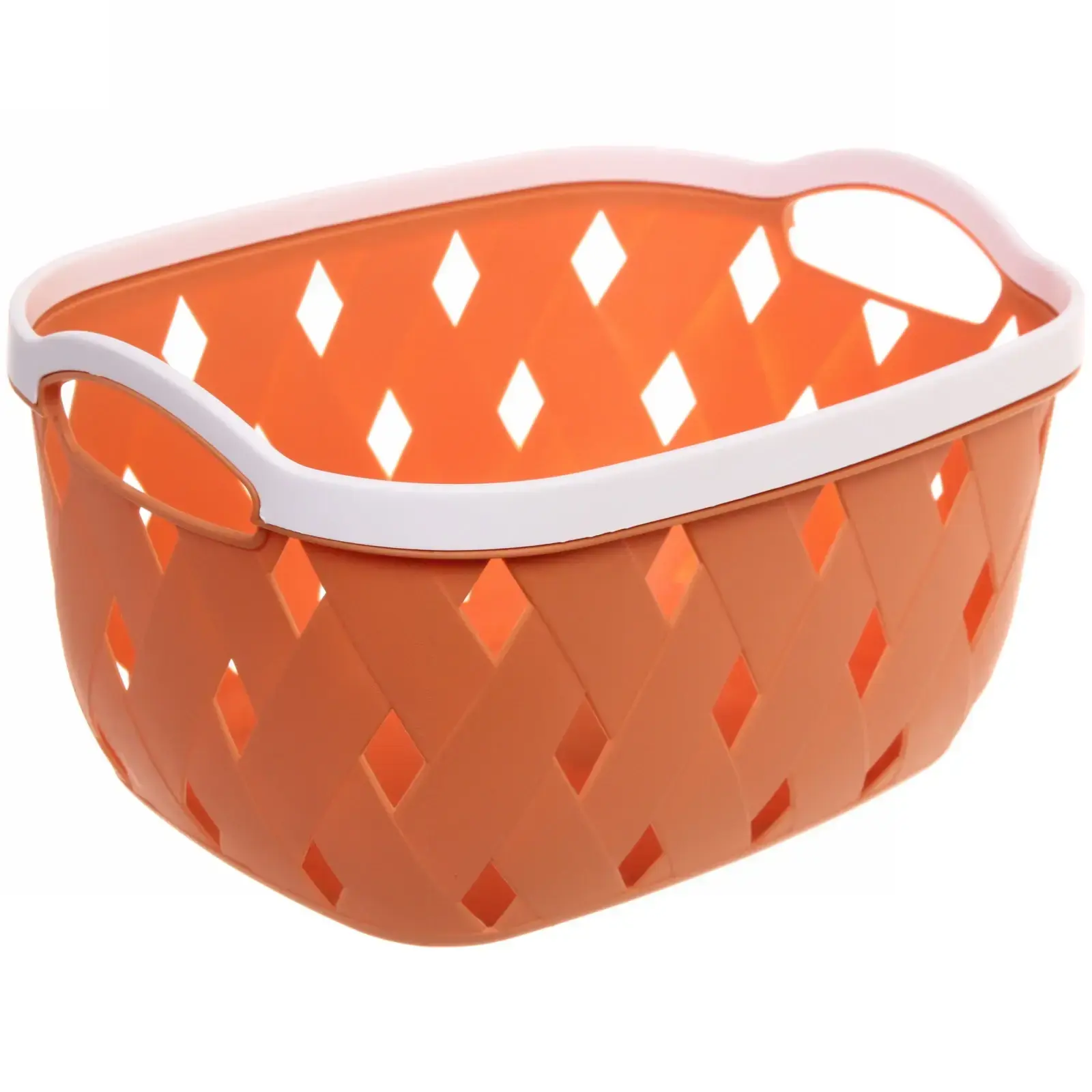 Пластиковая корзина «Эрида» сочетает практичность и эстетику: ромбовидные отверстия обеспечивают циркуляцию воздуха, а яркий оранжевый цвет с белым ободком добавит акцент в интерьер. Идеальна для хранения игрушек, белья, инструментов или сезонных вещей.