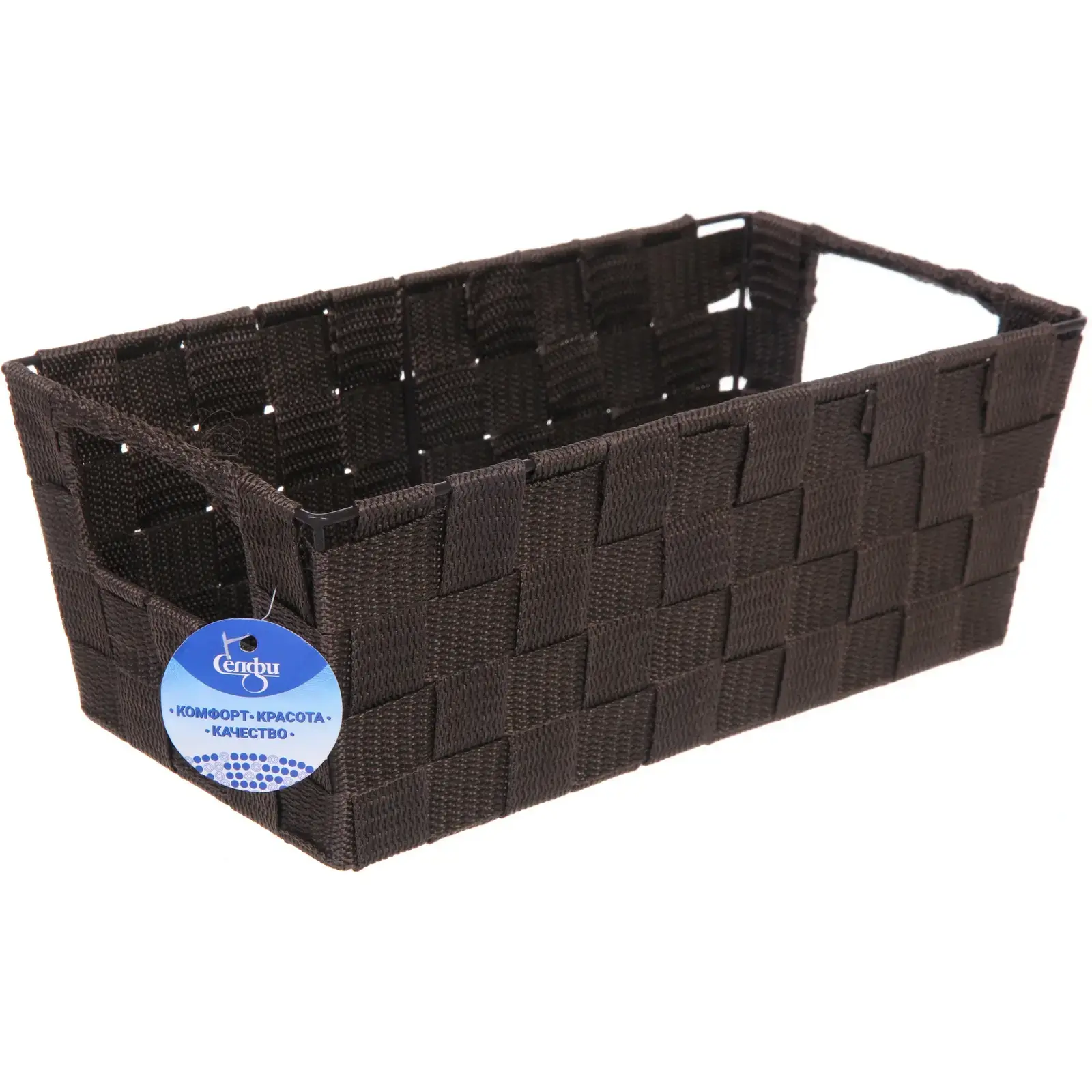 Корзина «ФАРТЕГО» изготовлена из качественного полиэстера и металла, что гарантирует долговечность и надежность. Плетеная структура не только привлекает внимание, но и обеспечивает хорошую вентиляцию для хранения. Вы сможете легко поддерживать порядок и организовать пространство, экономя время на поиски нужных вещей.