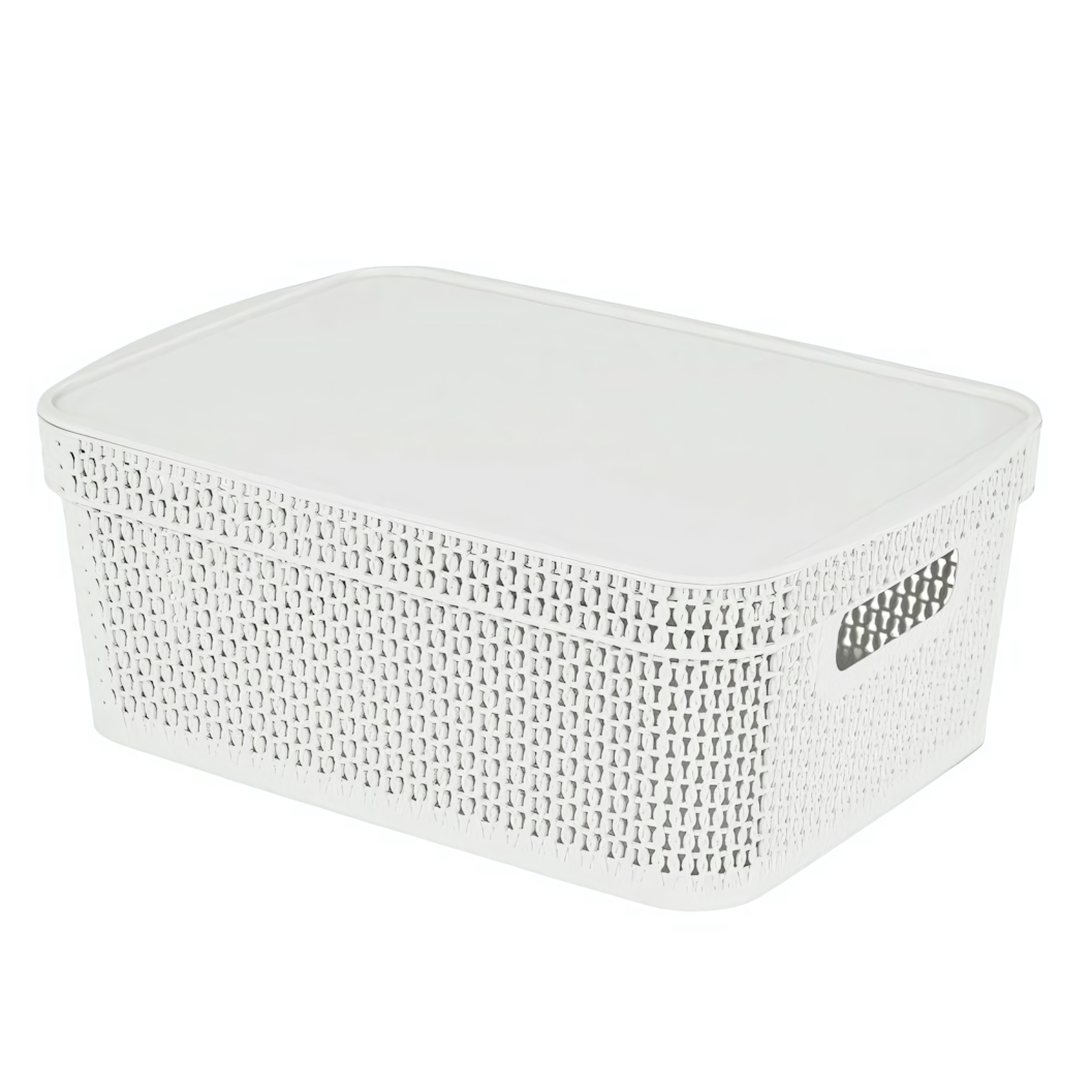 Корзина для хранения с крышкой объёмом 11 л помогает быстро навести порядок и поддерживать аккуратность в доме. Лаконичный цвет «белое облако» и ажурная текстура делают её не просто практичным аксессуаром, а аккуратным элементом интерьера, который гармонично смотрится в любой комнате.