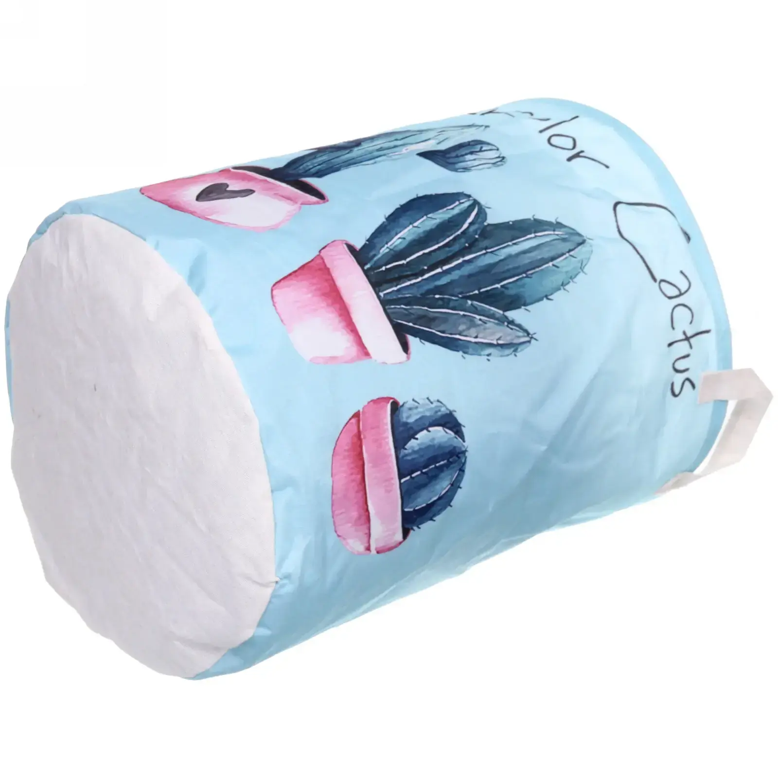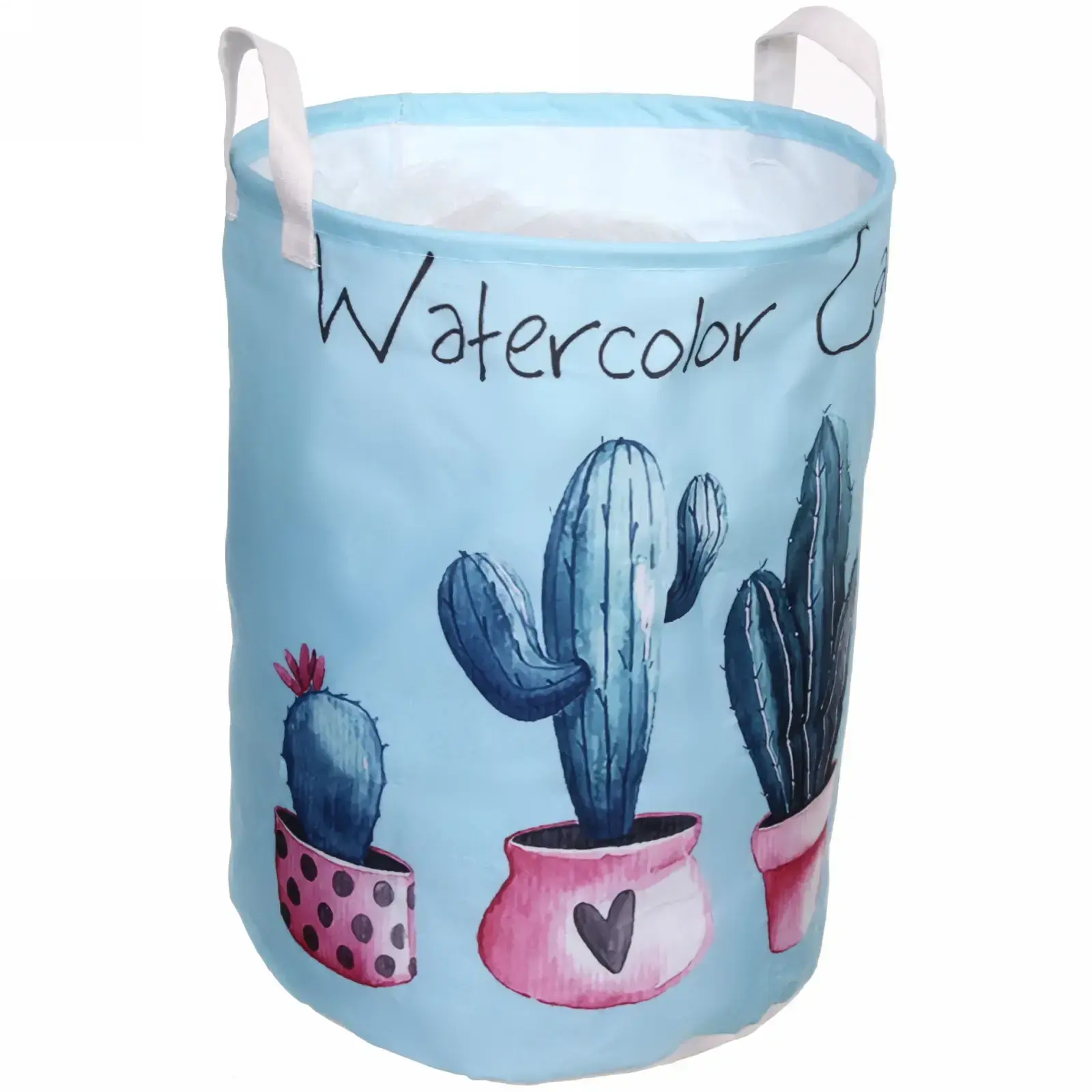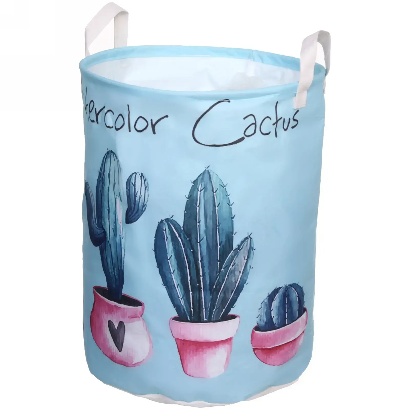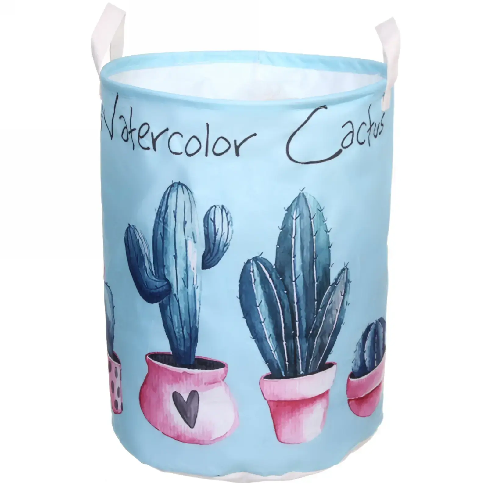 Корзина для хранения круглая с принтом кактусов, голубая, полиэстер, 44×33 см