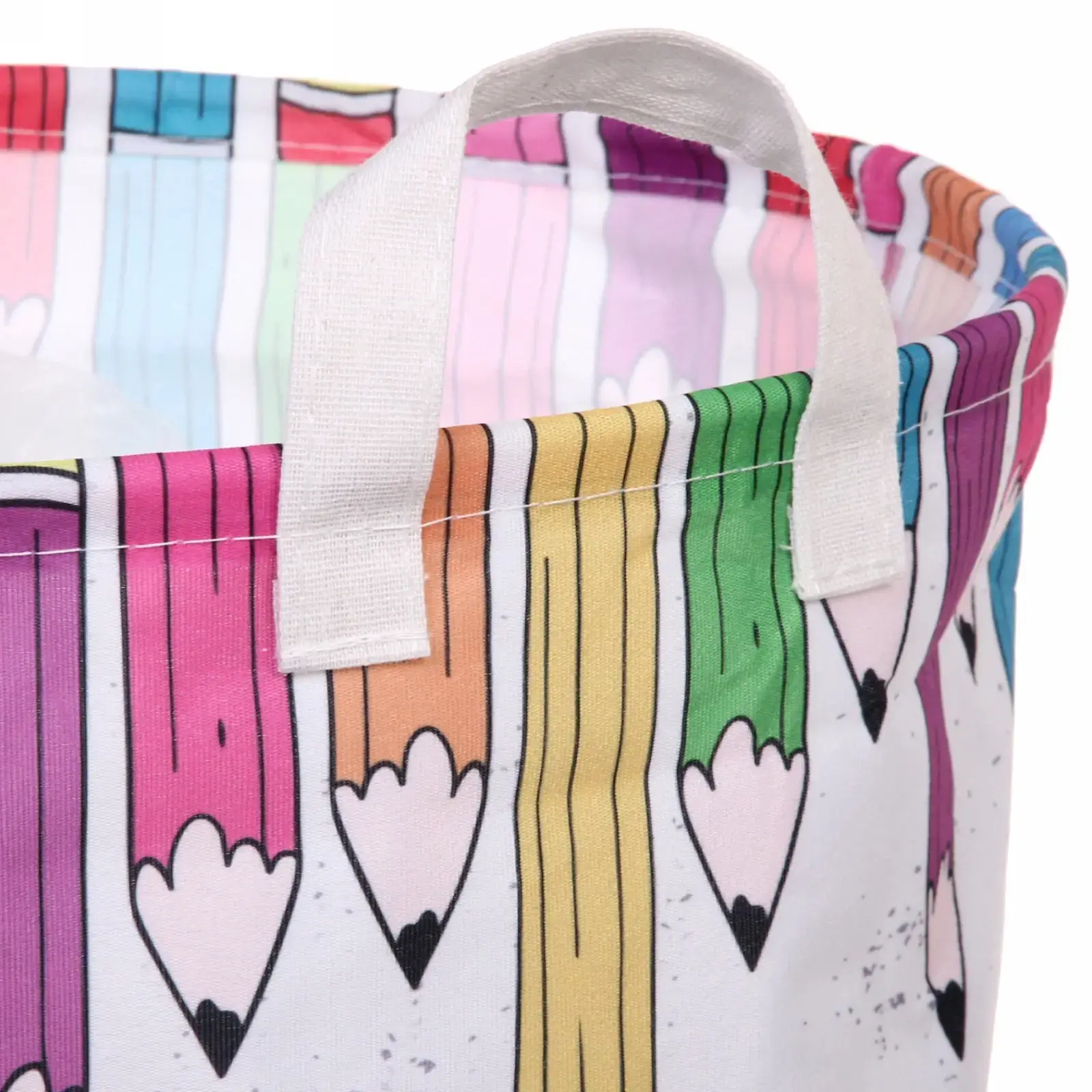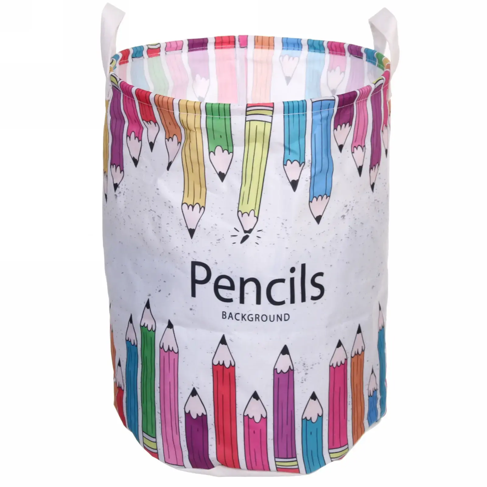 Корзина для хранения круглая с принтом карандашей, 44х33 см, полиэстер, ручки, модель "JA8"