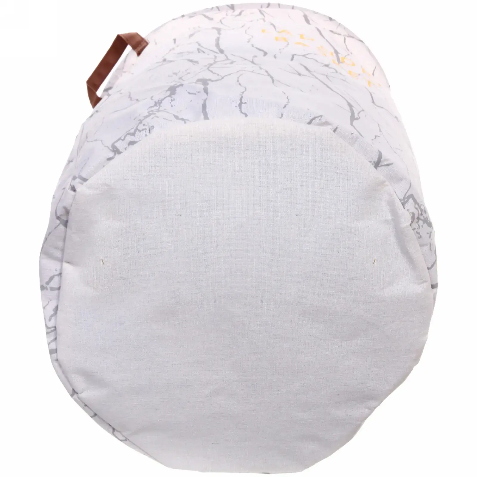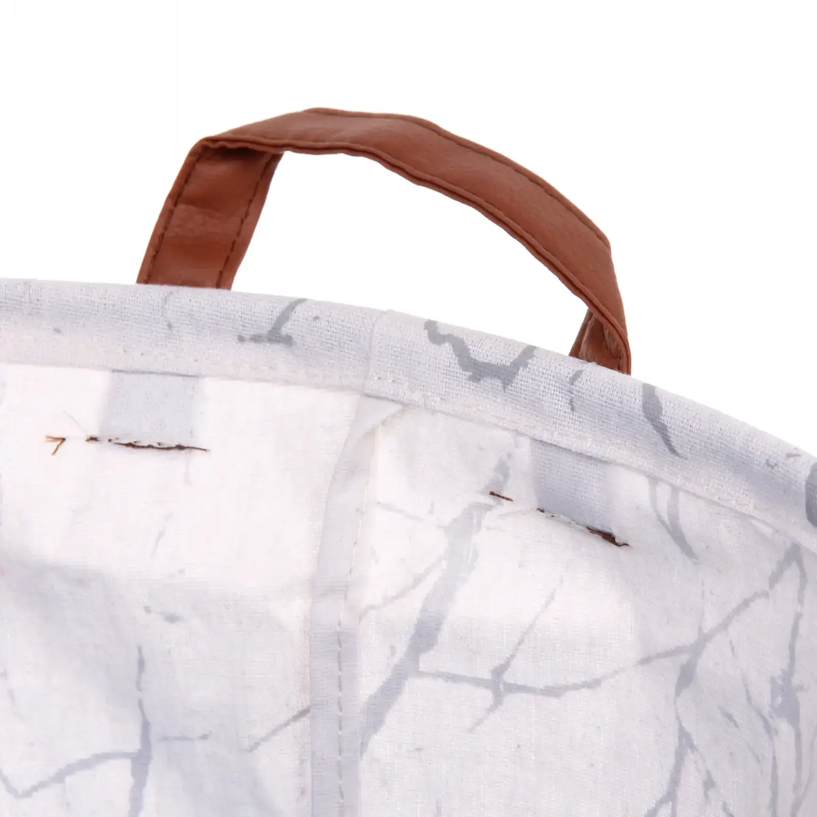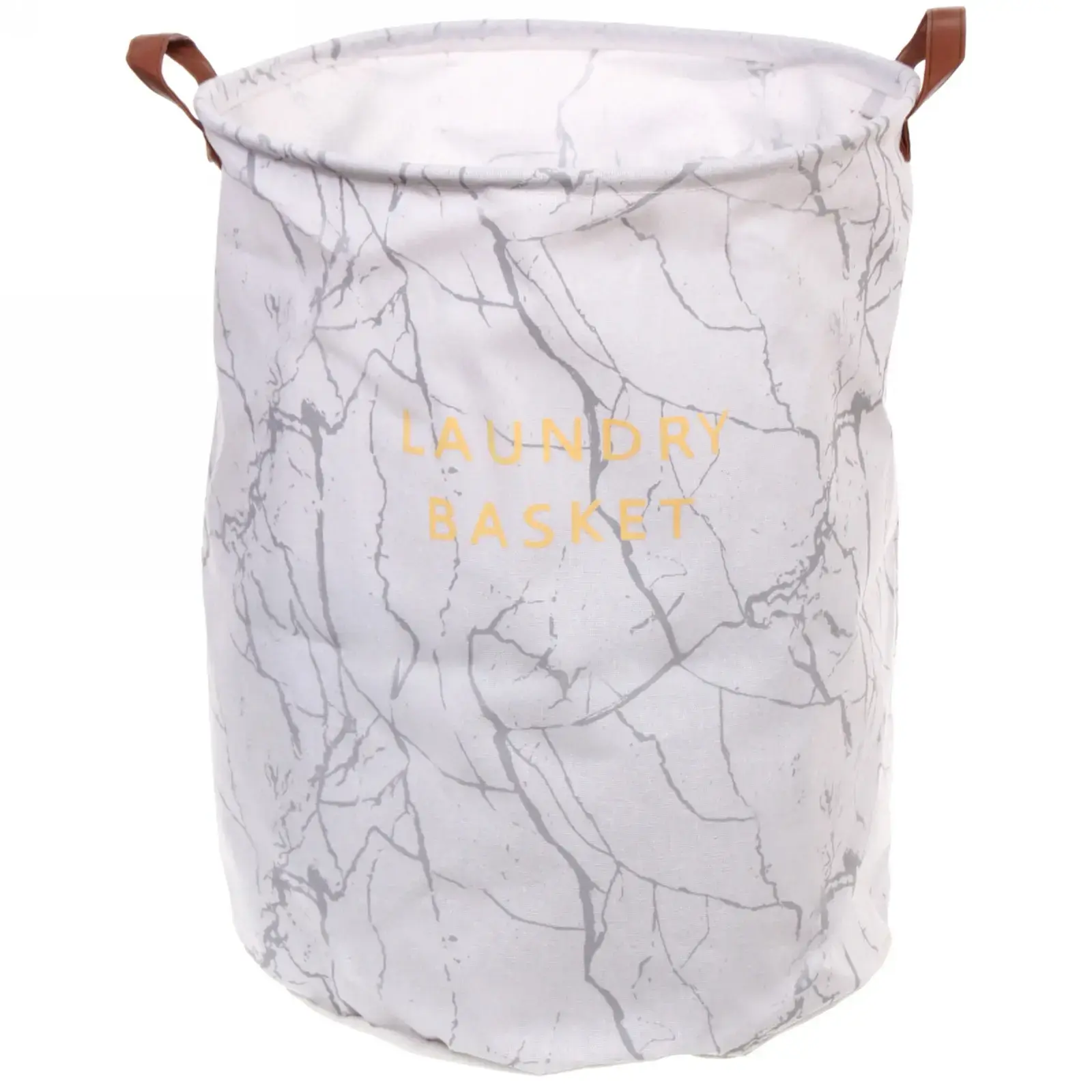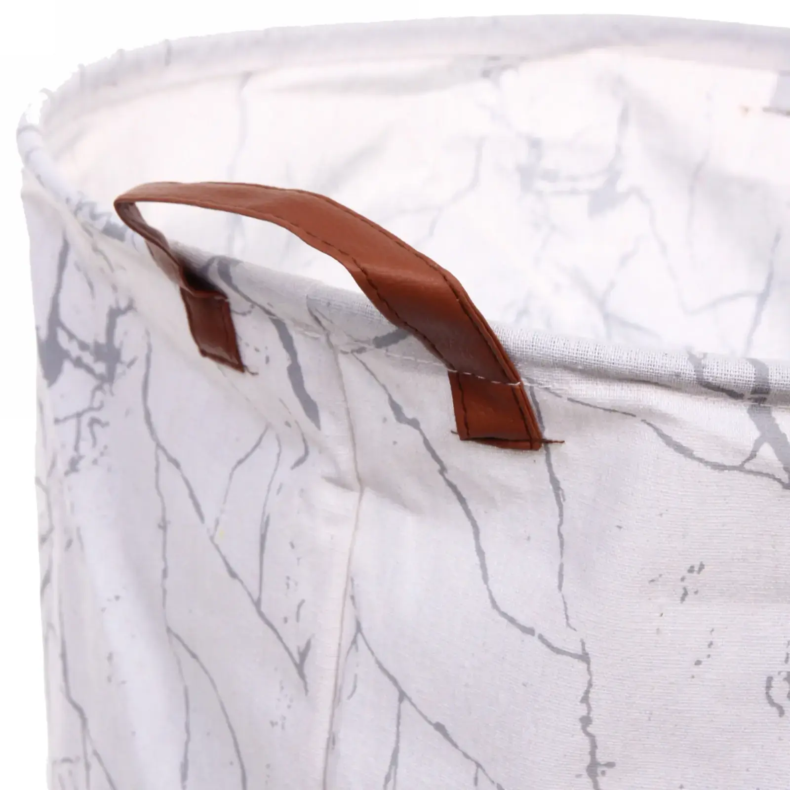 Корзина для белья круглая, 50х40 см, полиэстер, белый с мраморным узором, ручки из искусственной кожи