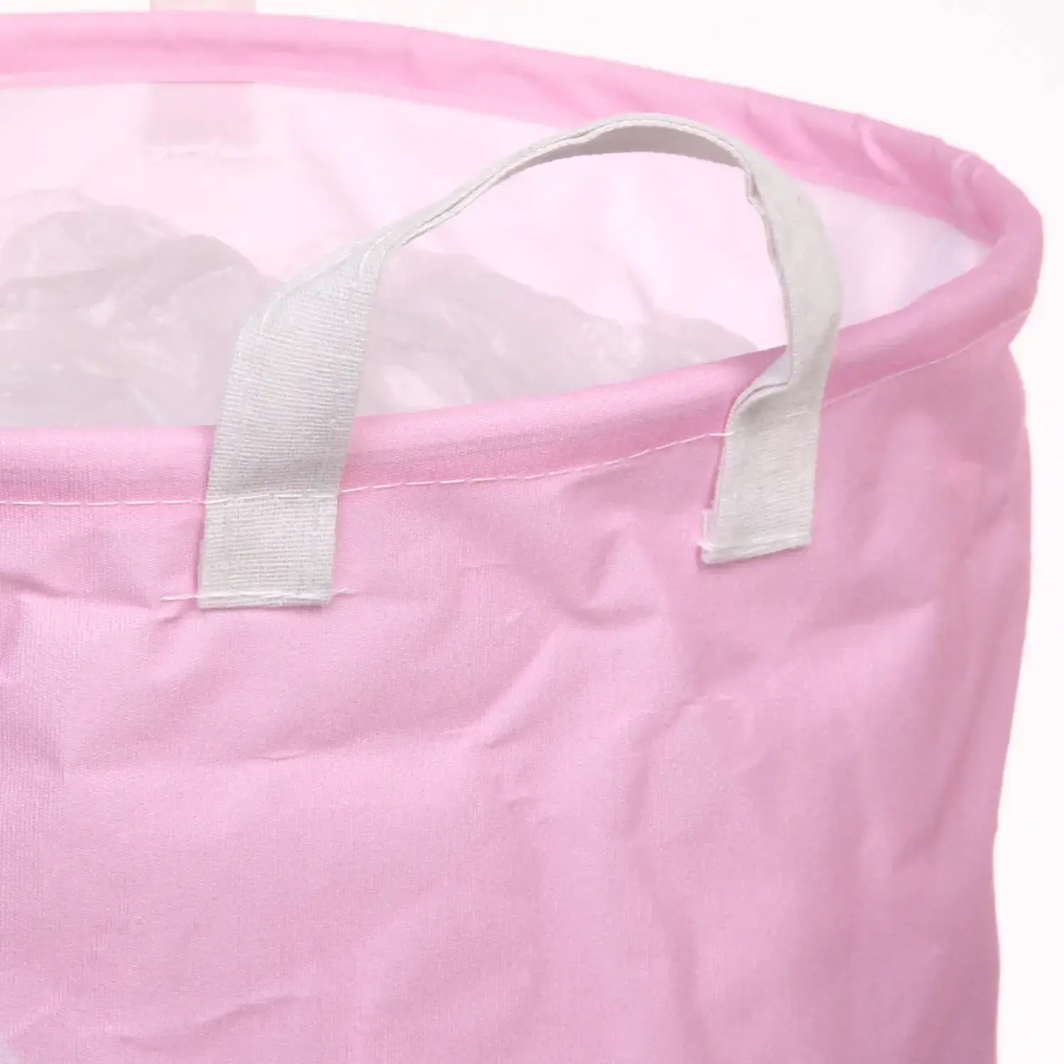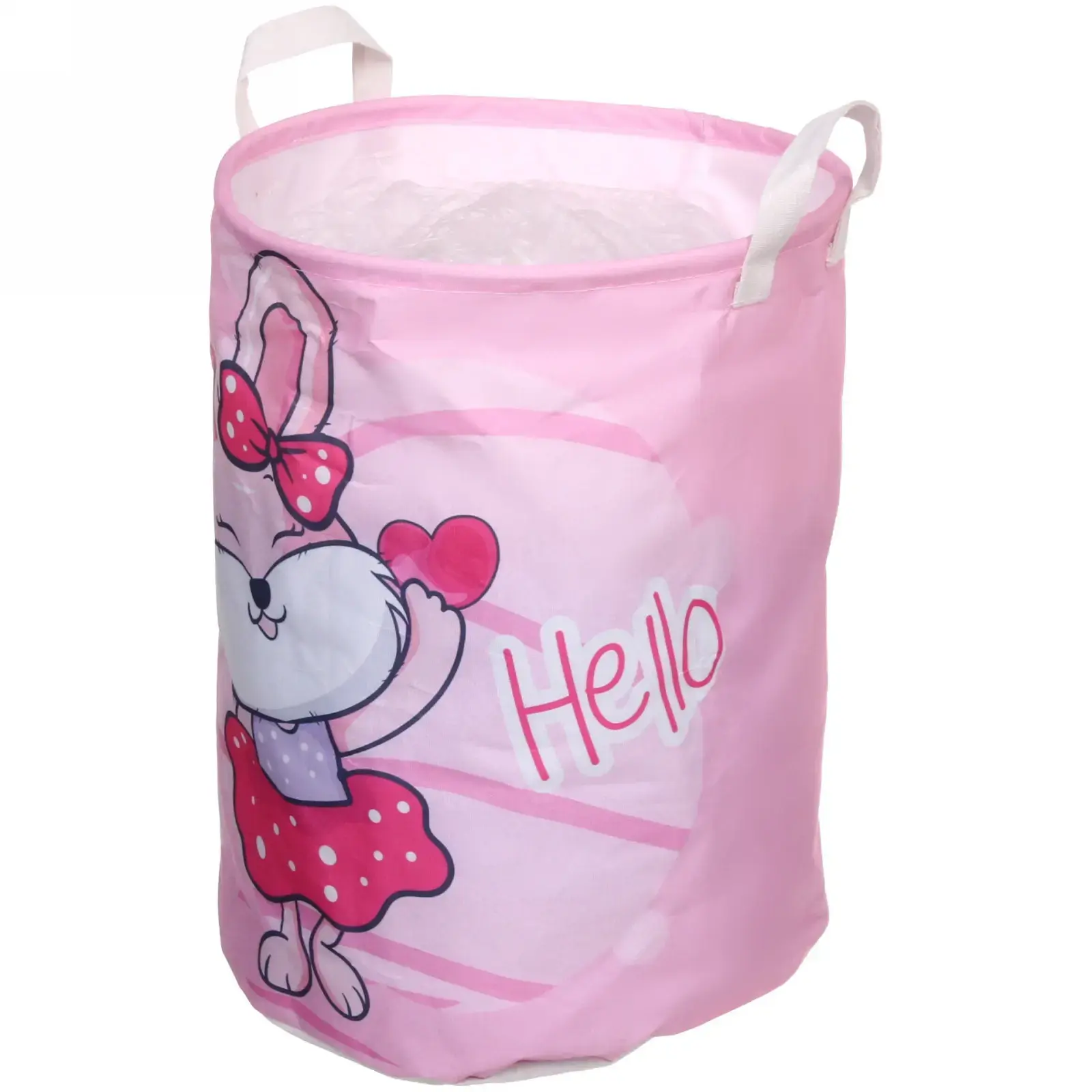 Корзина для белья круглая с рисунком зайки, 44х33 см, полиэстер, ручки, розовый цвет