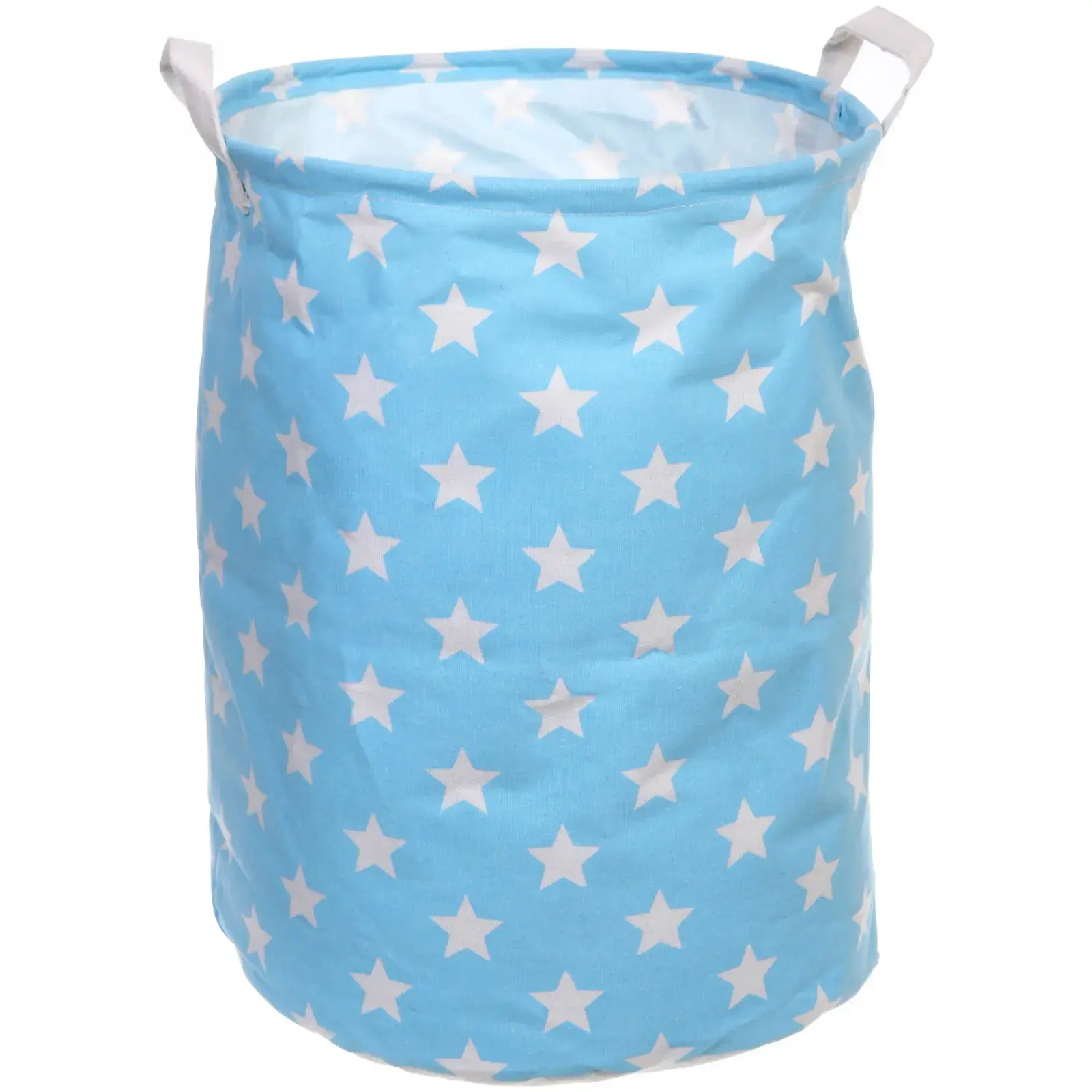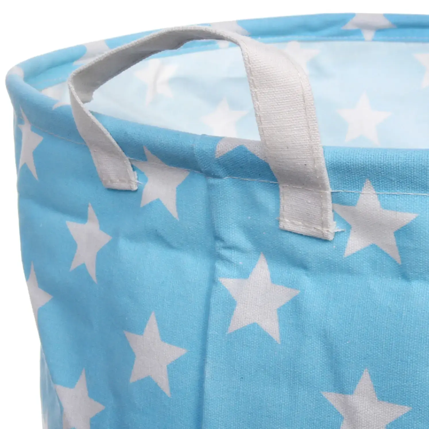 Корзина для хранения круглая, 45×35 см, голубая с белыми звездами, полиэстер, удобные ручки