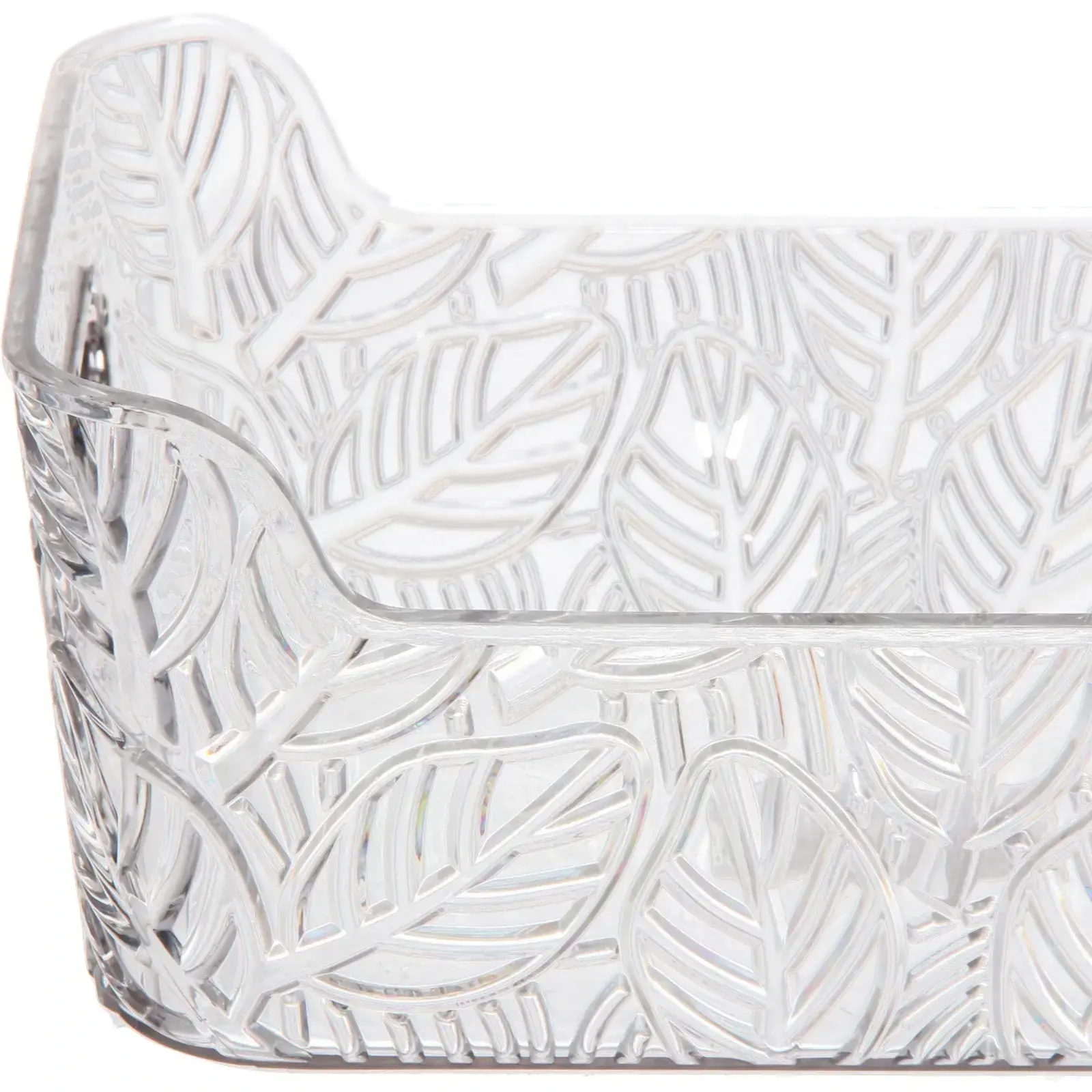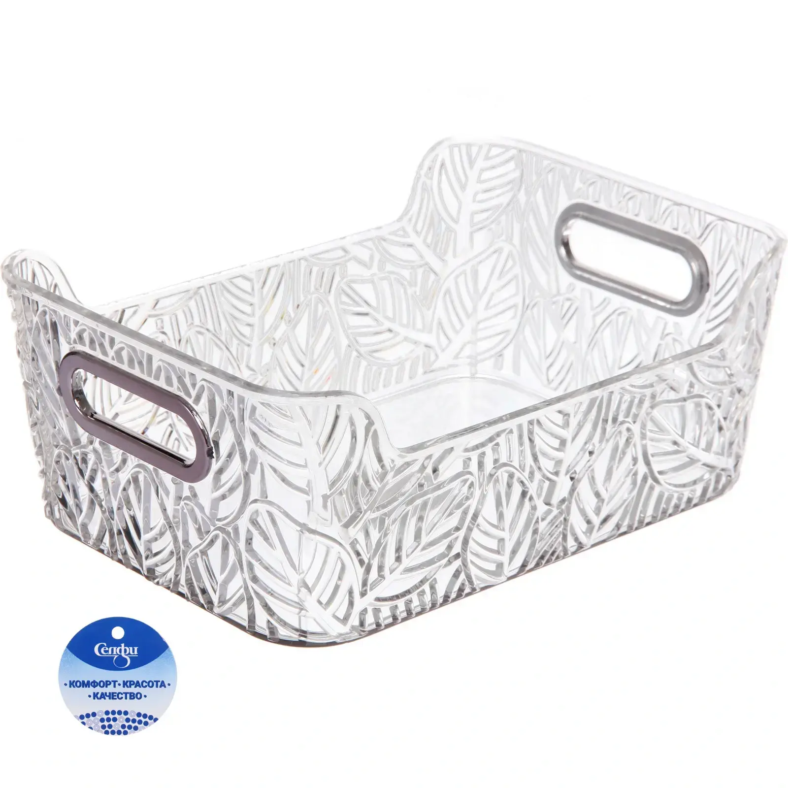 Выбирая корзину «ЛАМИНГТОН ФЛО», вы получаете не только стильный элемент интерьера, но и практичное решение для хранения. Прозрачный цвет позволяет видеть содержимое, что упрощает поиск нужных вещей. Рельефный узор в виде листьев придаёт корзине уникальный и привлекательный вид, а гладкая поверхность облегчает уход за ней.