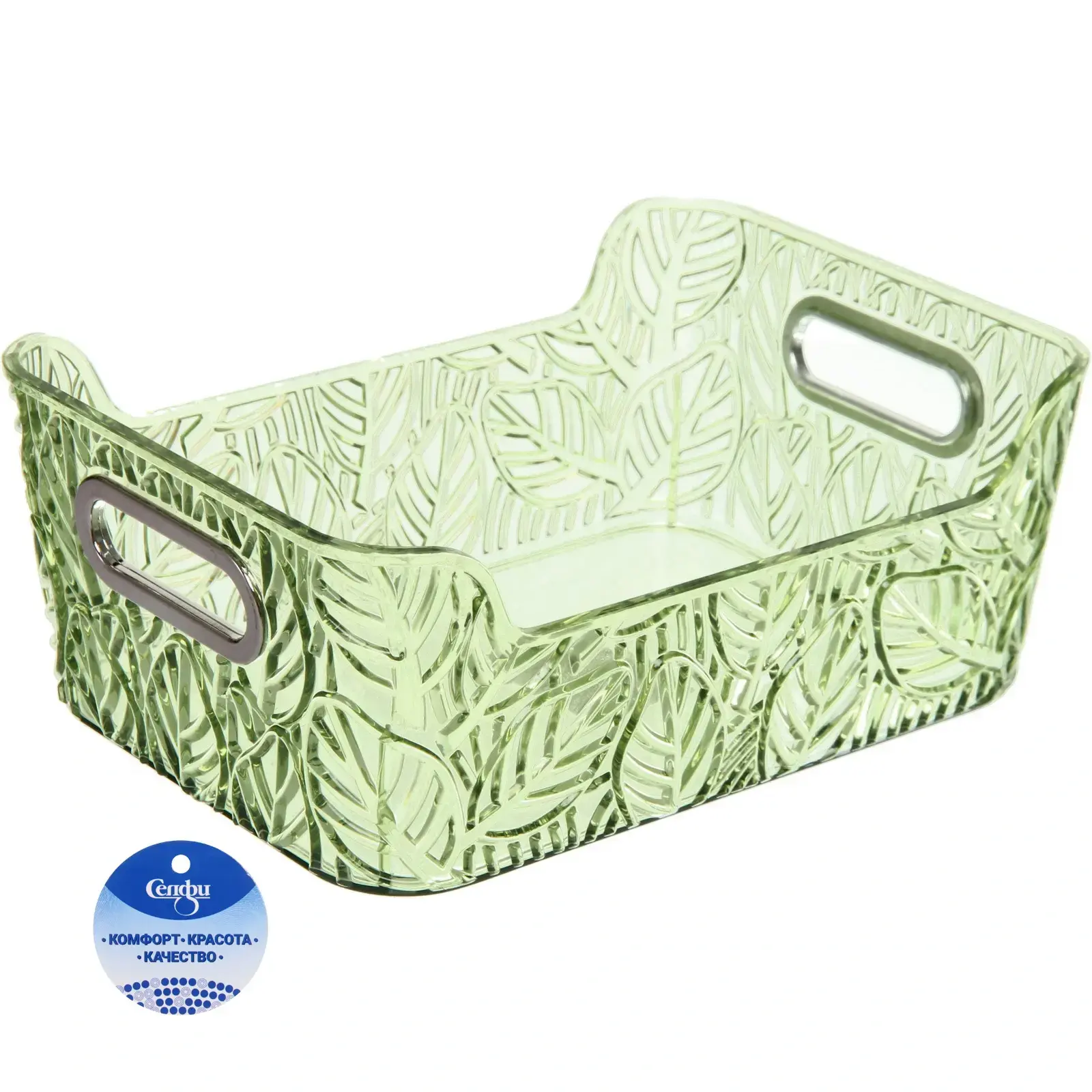 Корзина изготовлена из прочного прозрачного пластика, что позволяет видеть содержимое и легко находить нужные вещи. Металлические вставки в ручках обеспечивают дополнительную прочность, что делает корзину долговечной и надежной. Ее размеры 20х14,3х8 см позволяют использовать корзину даже в ограниченном пространстве.