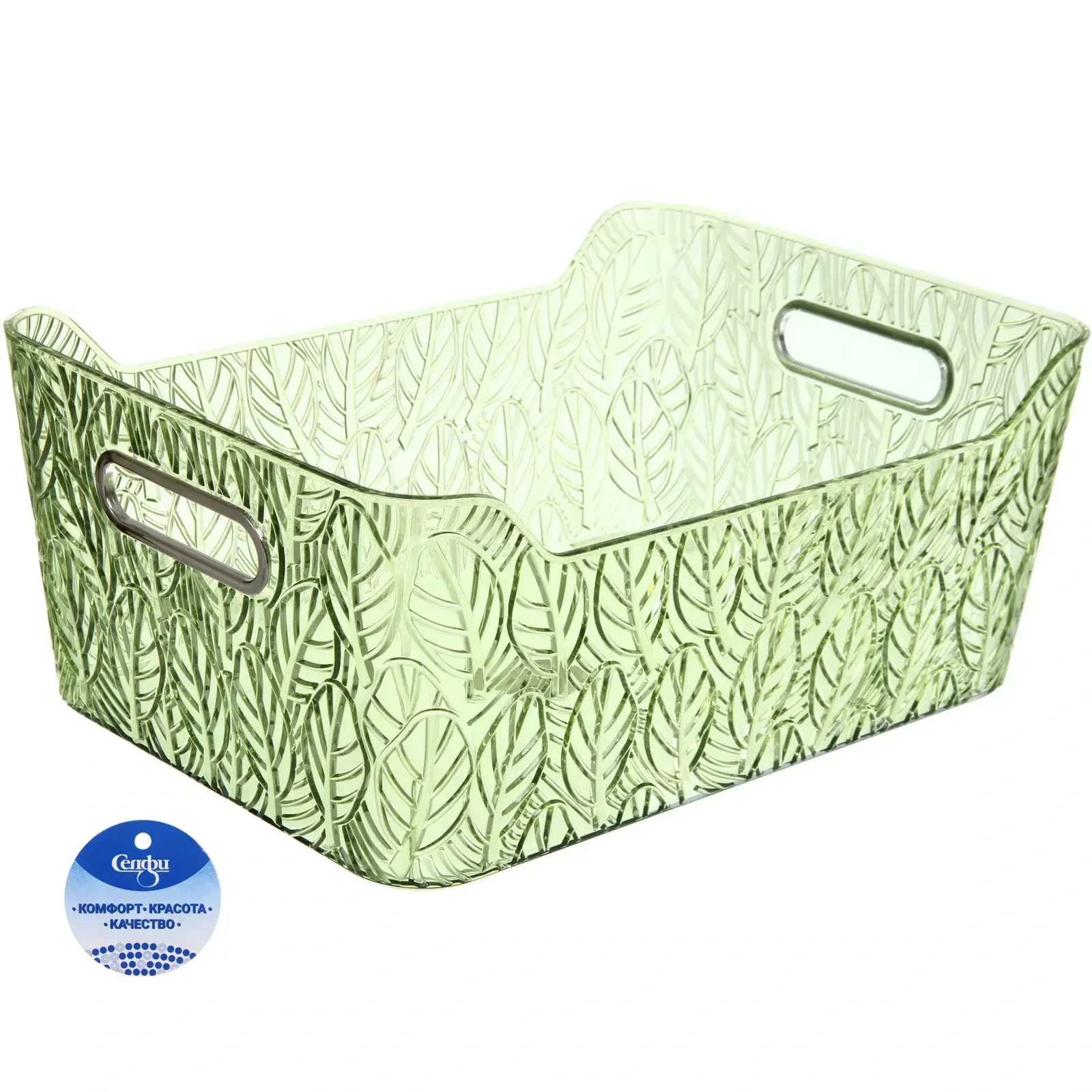 Корзина выполнена из прочного и легкого пластика, что гарантирует долговечность и надежность. Прозрачный материал позволяет легко видеть содержимое, а рельефный узор не только эстетически привлекателен, но и добавляет текстурный эффект. Вы сможете быстро находить нужные вещи, не тратя время на поиски.