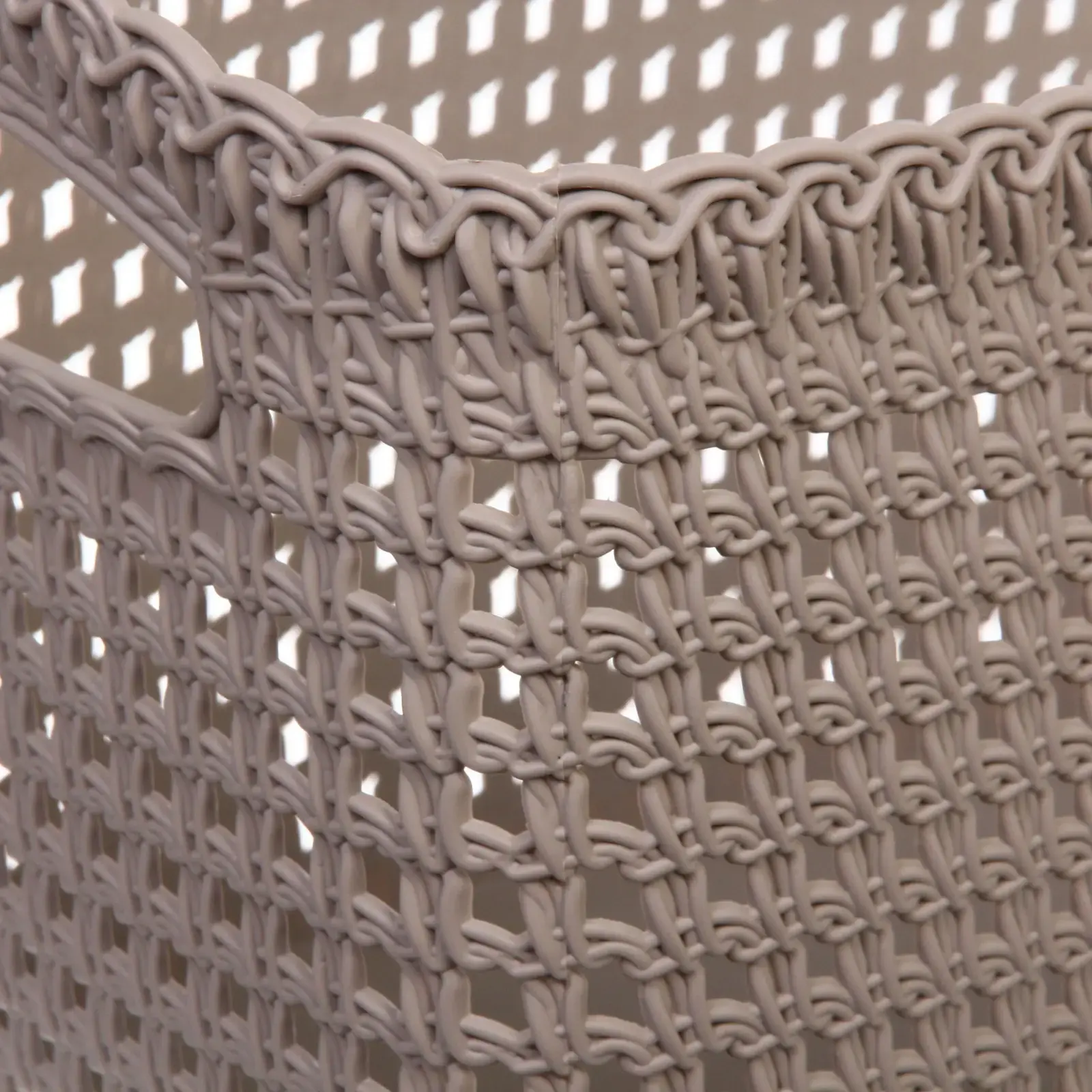 Корзина выполнена из качественного пластика, что обеспечивает ее долговечность и легкость в уходе. Плетеная текстура не только придает ей стильный вид, но и обеспечивает хорошую вентиляцию для хранения различных предметов. Вы сможете легко поддерживать порядок и чистоту, а также быстро находить нужные вещи.