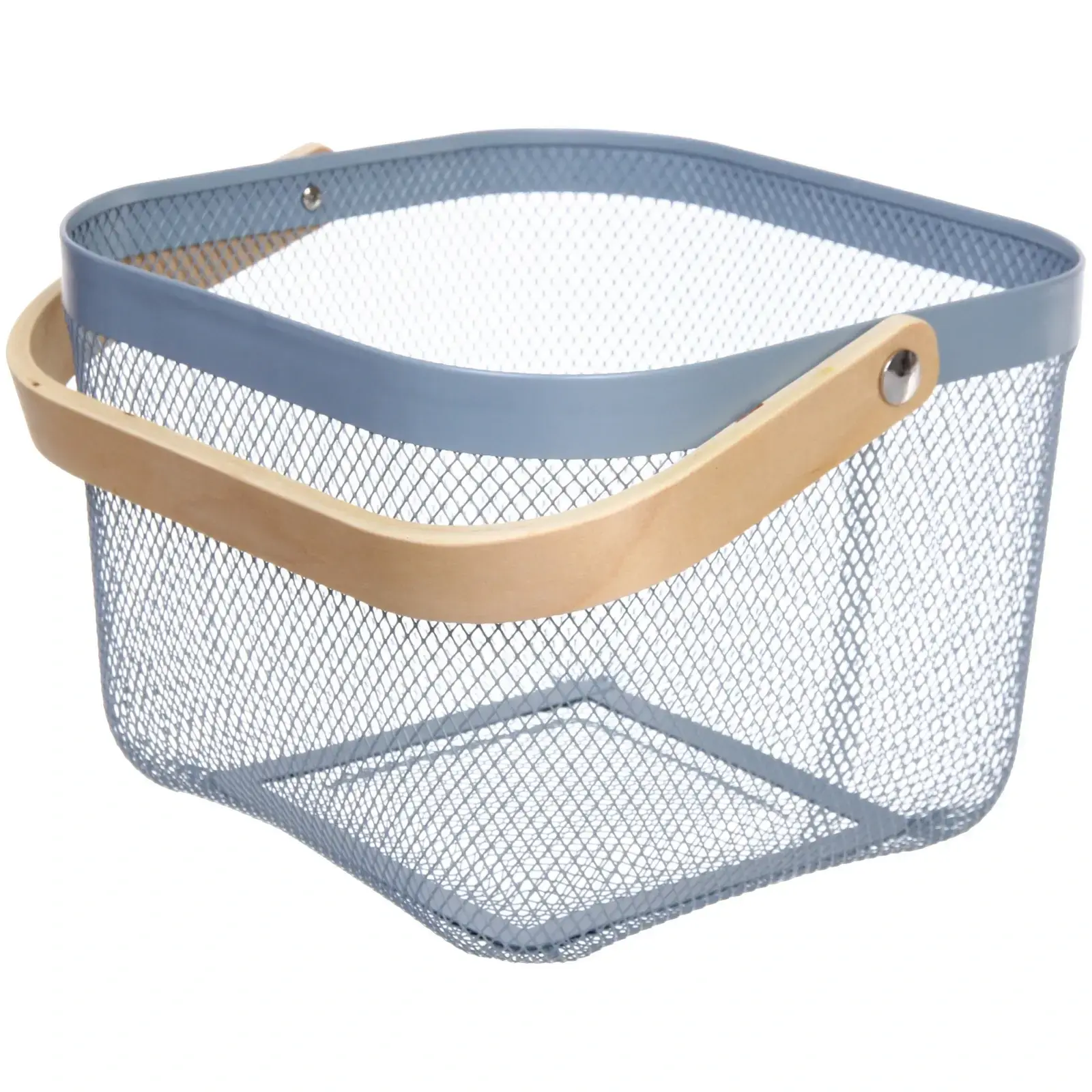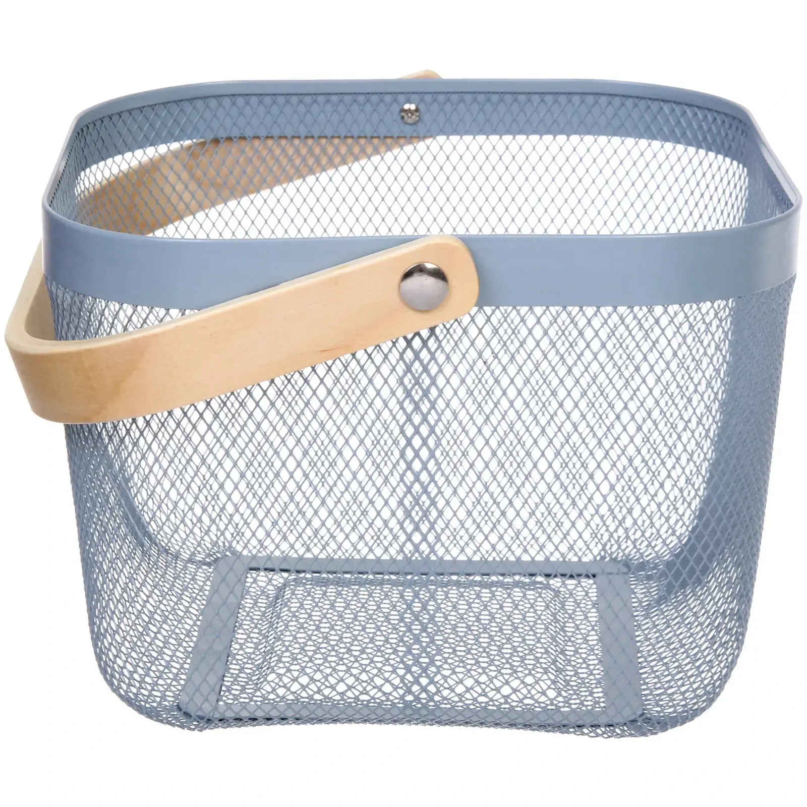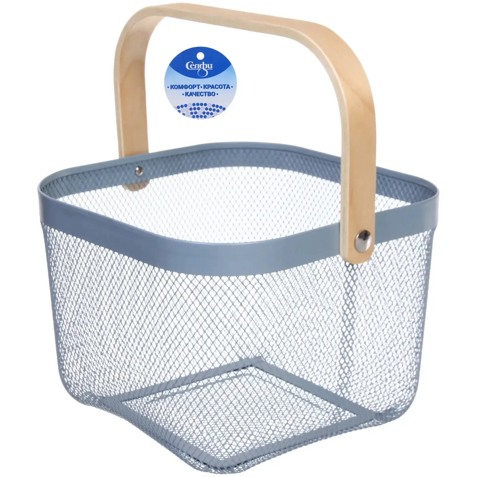 Корзина имеет квадратную форму и размеры 24х24х18 см, что позволяет удобно размещать ее в любом уголке вашего дома. Деревянная ручка обеспечивает комфорт при переноске, а сетчатая структура позволяет видеть содержимое, что упрощает поиск нужных вещей. Она станет отличным дополнением к вашему дому, а также подойдет для использования в офисе или на даче.