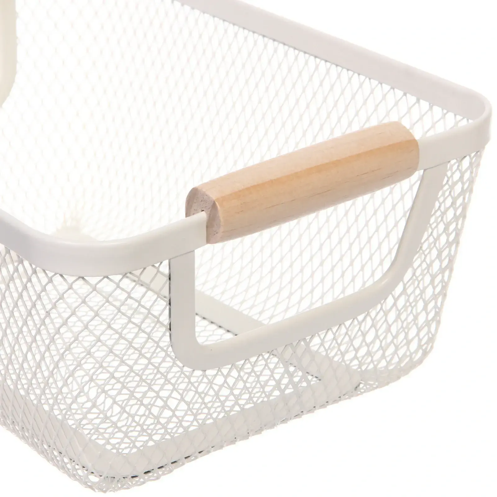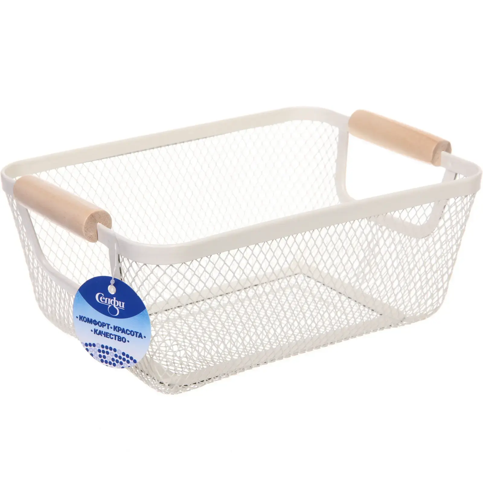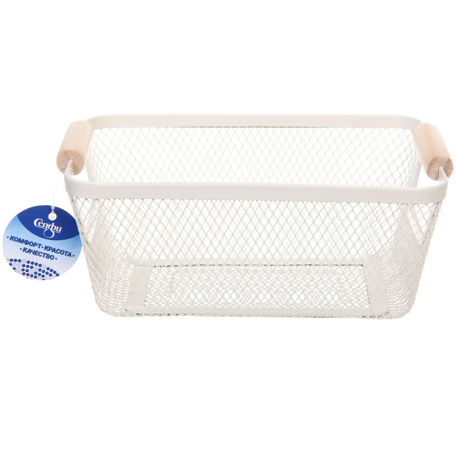 Корзина металлическая «ФАРГО» с деревянными ручками, белая, 17×10×25см, для организации пространства