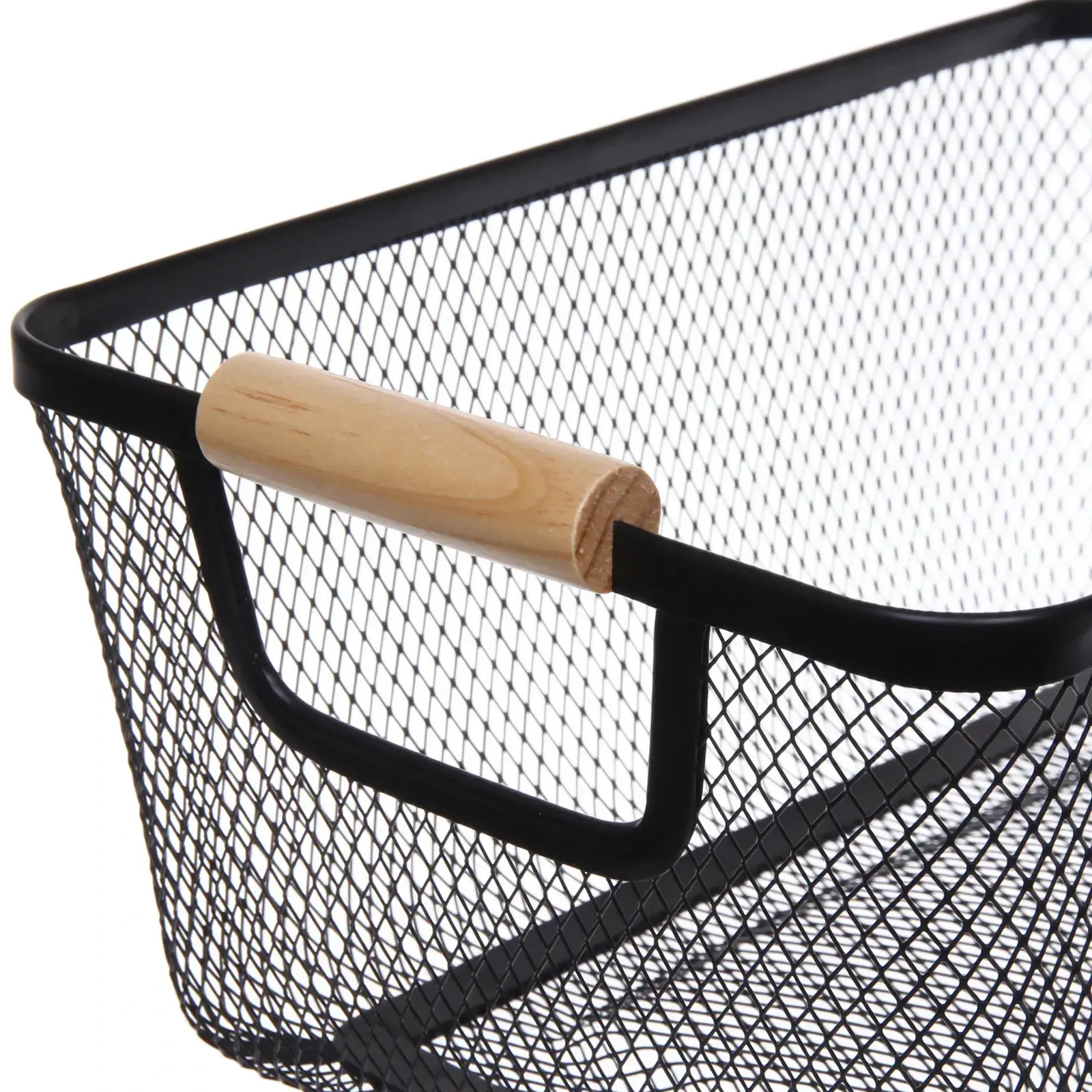 Эта корзина идеально подходит для хранения игрушек, канцелярских принадлежностей, мелочей и других предметов. Она станет отличным дополнением как для дома, так и для офиса. Удобные деревянные ручки обеспечивают комфорт при переноске, а прочная металлическая сетка гарантирует долговечность и надежность.