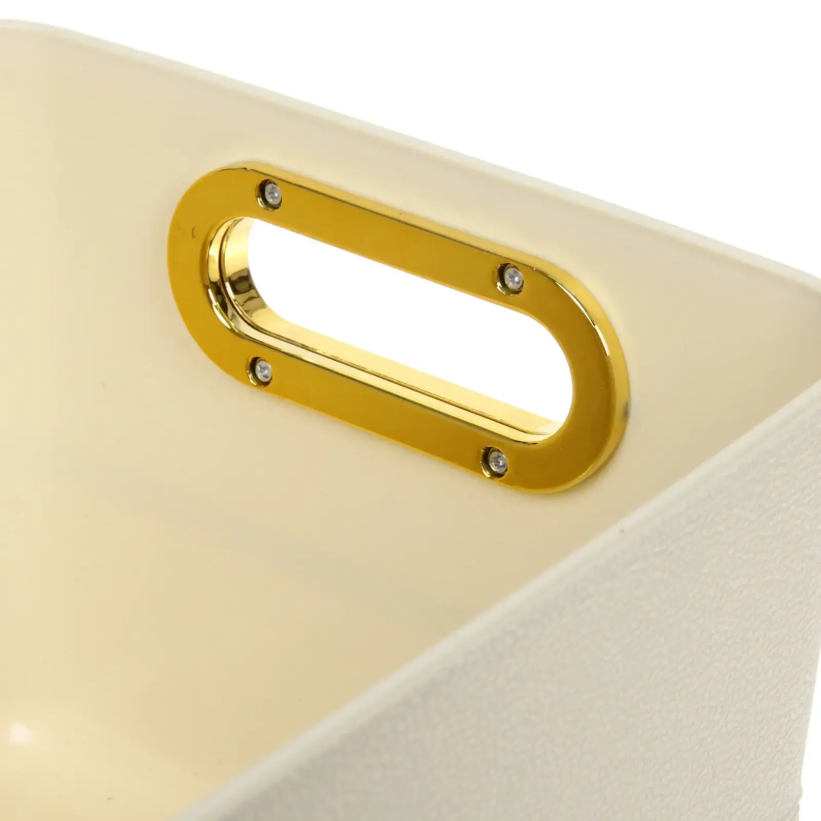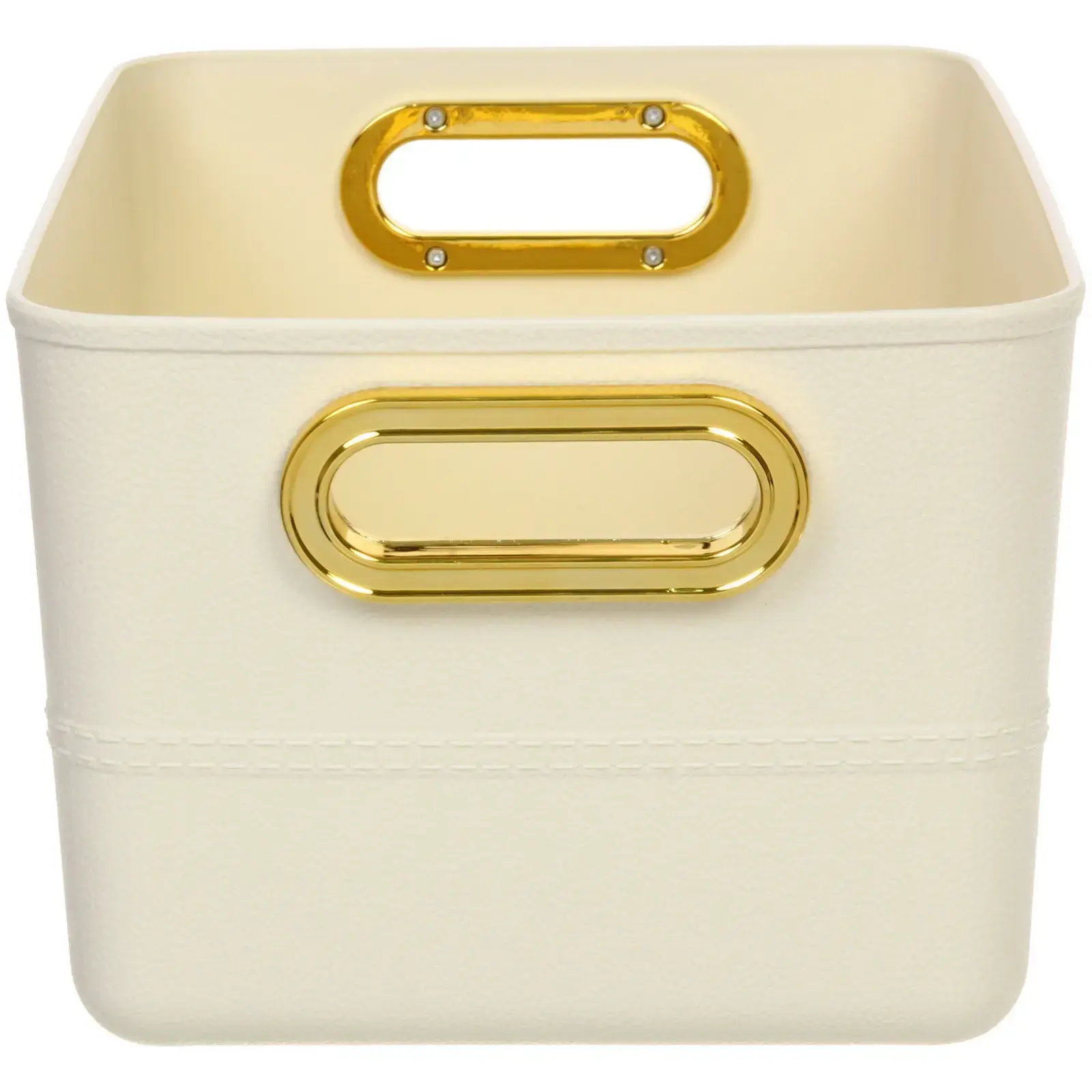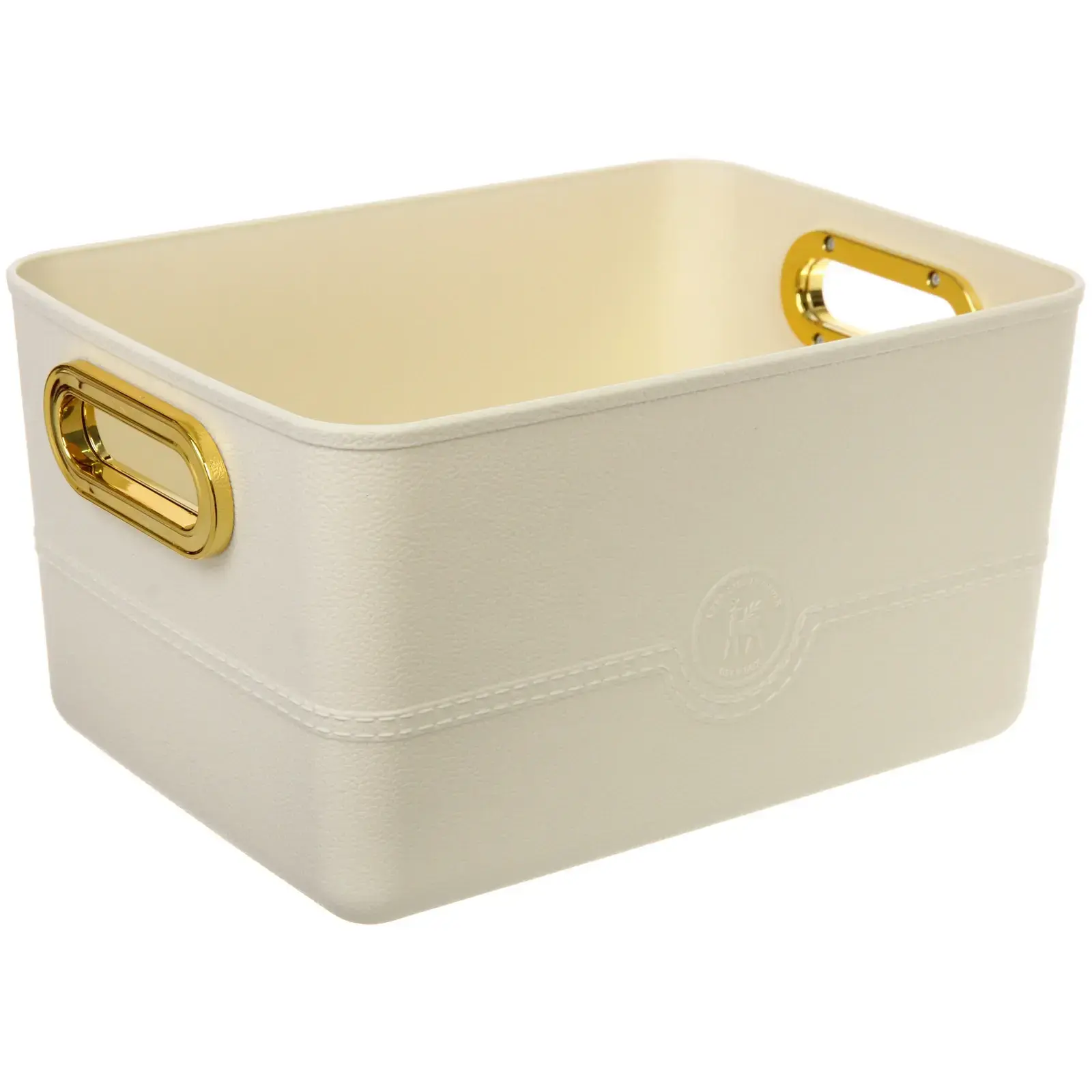Ищете идеальное решение для организации пространства? Корзина для хранения «ОКСФОРД» станет вашим надежным помощником в создании порядка в доме. Ее стильный молочный цвет и текстурированная поверхность добавят элегантности в любой интерьер, а удобные золотистые ручки обеспечат легкость в переноске.
