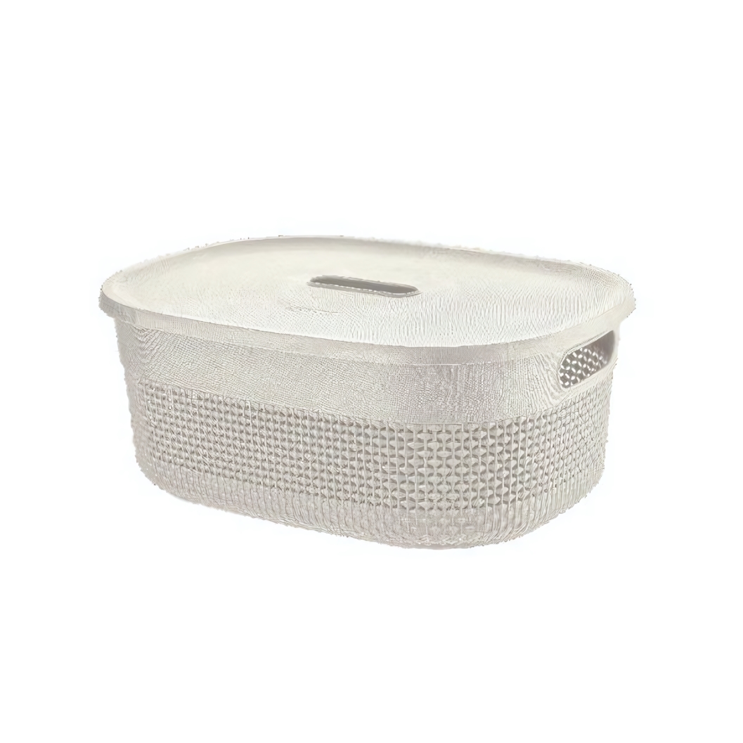 Корзина подходит для хранения бытовых мелочей, косметики, аксессуаров, канцелярии, детских принадлежностей и других повседневных вещей. Ее удобно разместить в ванной, спальне, гардеробной или на полке шкафа. Крышка плотно прилегает, защищая содержимое от пыли и создавая аккуратный внешний вид.