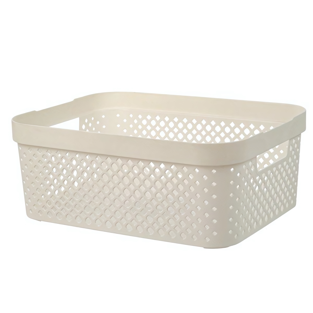 Изделие выполнено из безопасного перерабатываемого пластика, подходящего для хранения пищевых продуктов и детских игрушек, а также для использования в помещениях с повышенной влажностью. Объем 10 л оптимален для повседневных задач: корзина не занимает много места, но вмещает все необходимое.