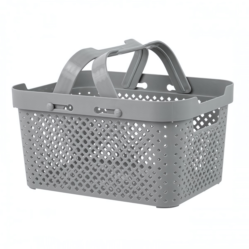 Прямоугольная форма экономит пространство на полках и в ящиках, позволяя рационально использовать каждый сантиметр. Перфорация на стенках обеспечивает циркуляцию воздуха, а удобные ручки облегчают переноску. Лёгкий, но прочный пластик не утяжеляет корзину даже при наполнении и устойчив к воздействию влаги, что особенно важно для ванной комнаты или кухни.