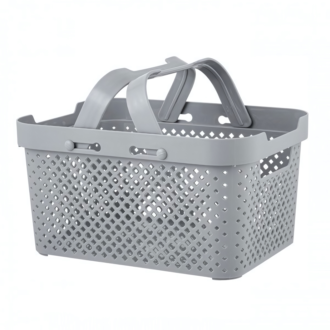 Модель подходит для хранения одежды, игрушек, книг, канцелярии и аксессуаров для ванной комнаты. Прямоугольная форма помогает рационально использовать место на полках и стеллажах, а перфорированные стенки обеспечивают циркуляцию воздуха. Корзину удобно переставлять благодаря продуманной системе ручек.