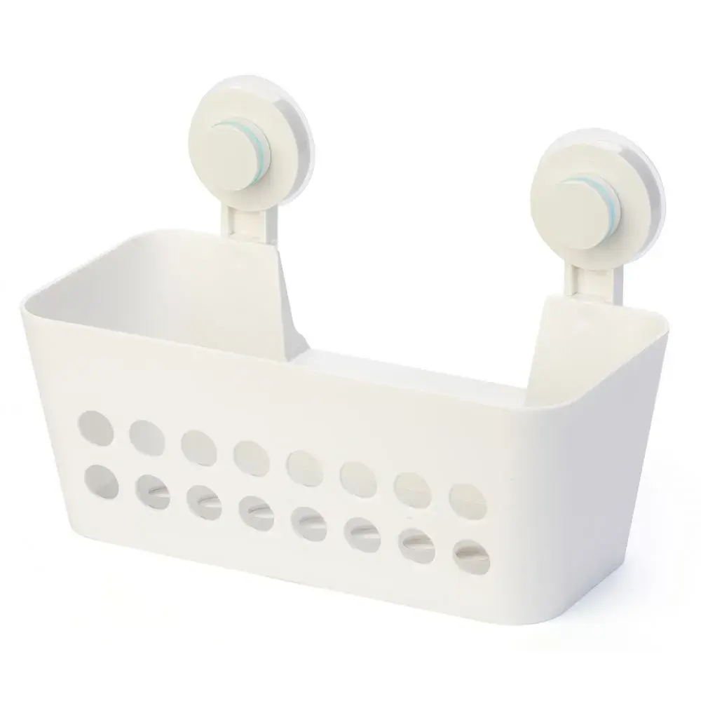 Корзина подвесная на вакуумных присосках, пластик, белый цвет, прямоугольная форма
