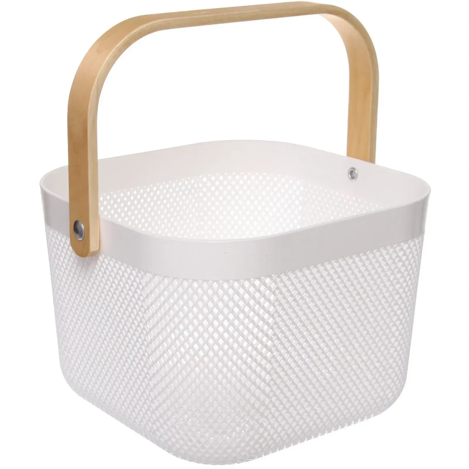 Корзина для хранения 'ФАРГО' с деревянной ручкой, белая, 24*23.5*18см