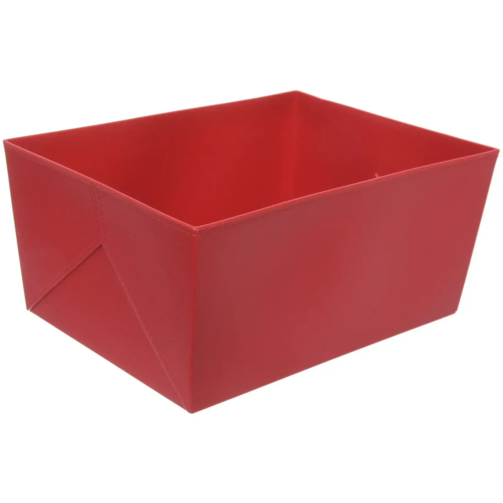 Корзина выполнена из прочного пластика, что обеспечивает её долговечность и устойчивость к повреждениям. Бордовый цвет добавляет яркости и стиля в интерьер, а компактные размеры 34,5х25,5х16 см позволяют удобно разместить её на полках или в шкафах. Эластичные стенки обеспечивают возможность складывания, что позволяет экономить место при хранении.